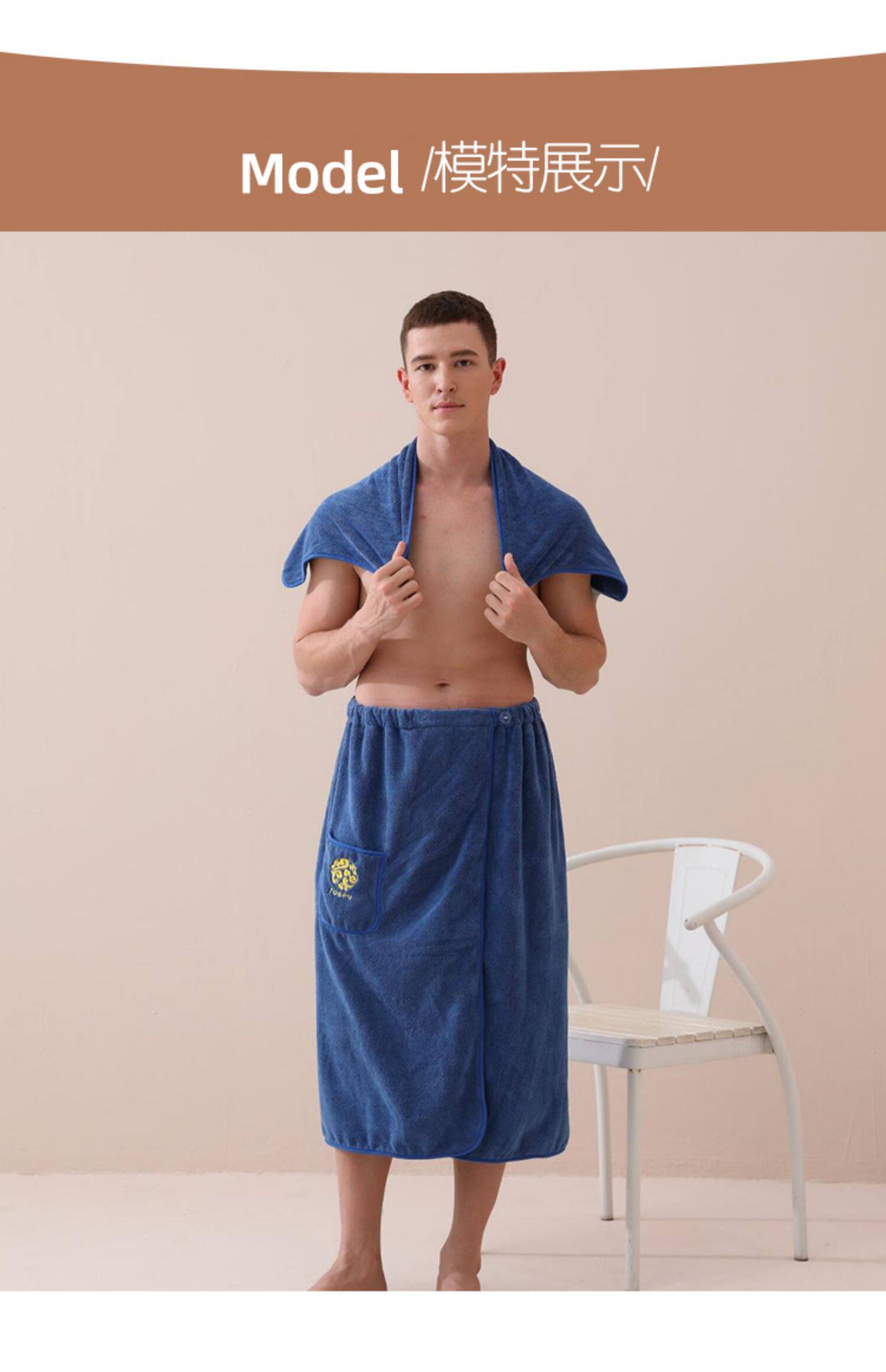 - Носимая мужская юбка для ванны [темно -синий]