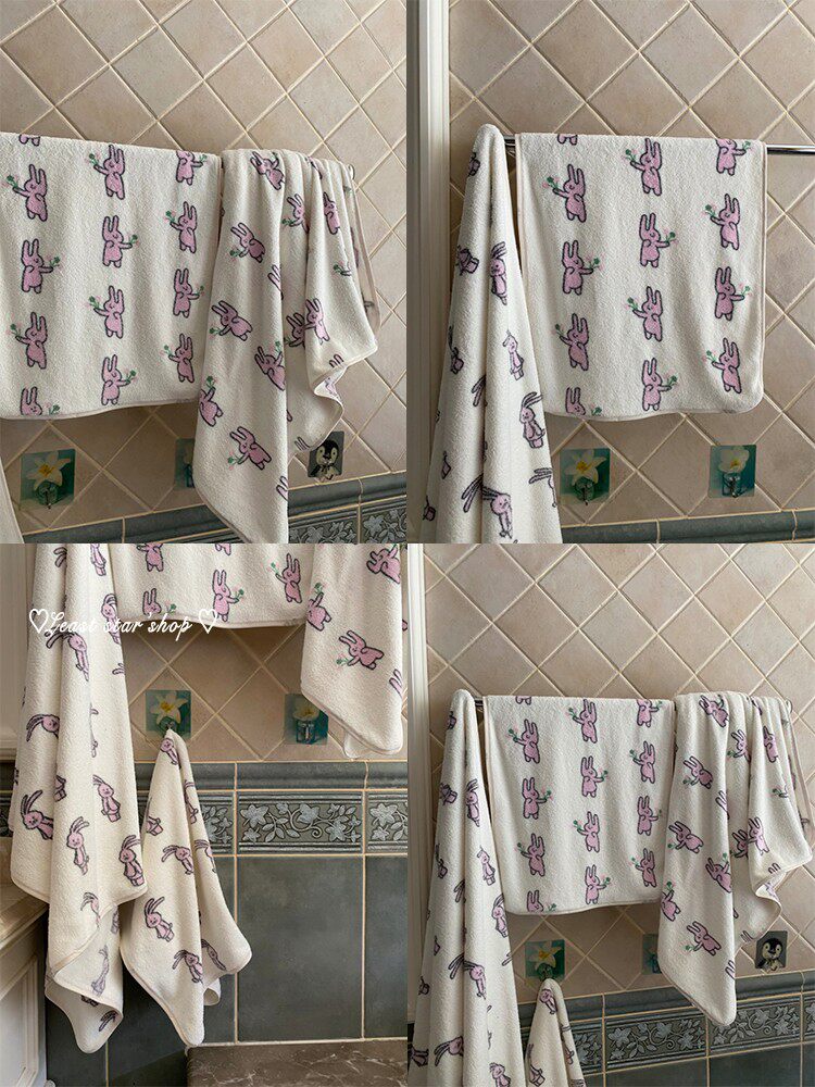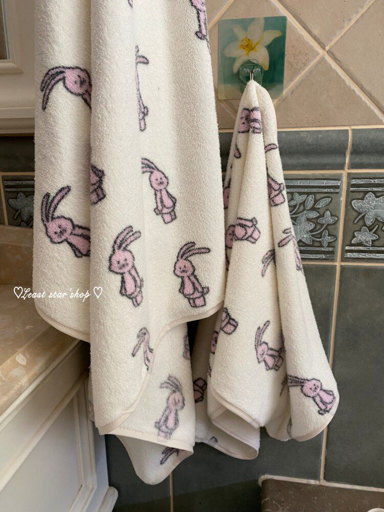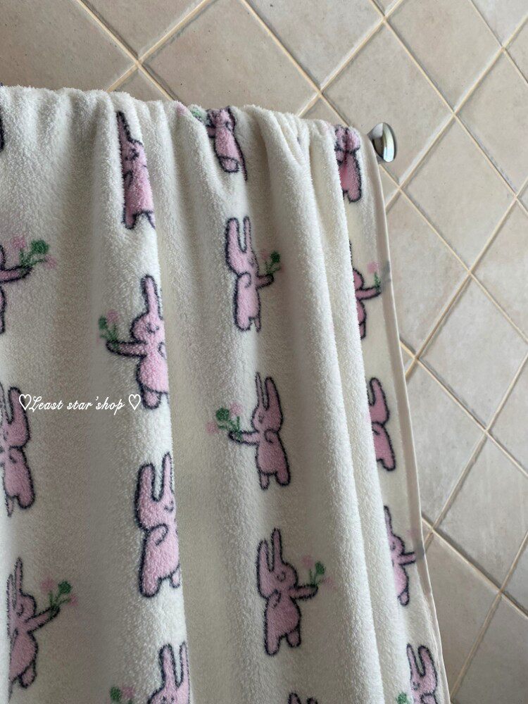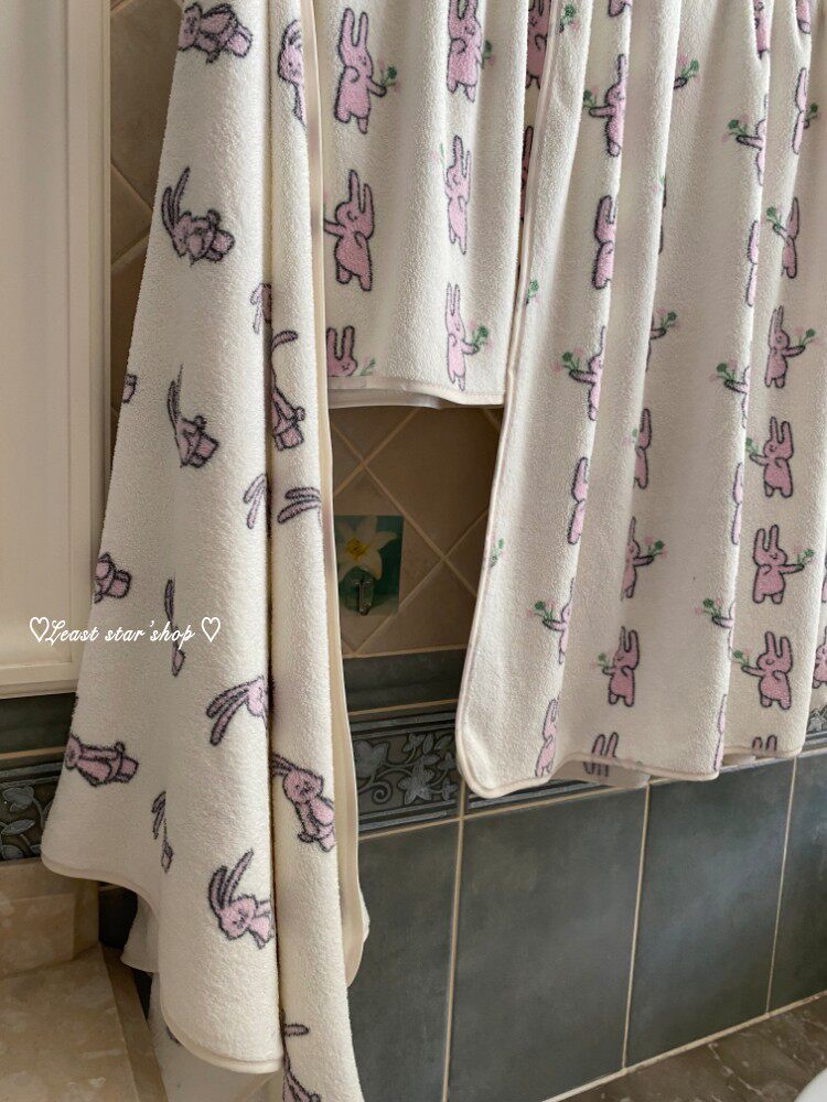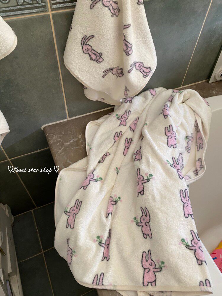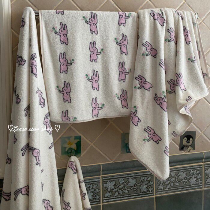 - Полотенце для ванны розовые уши+цветочные кролики