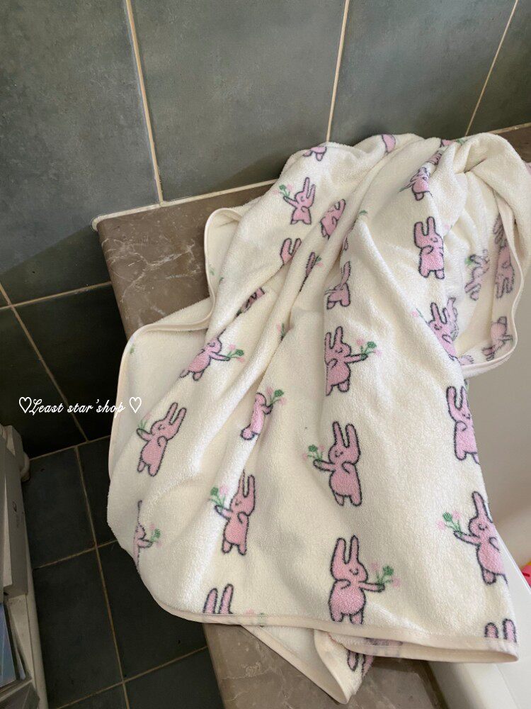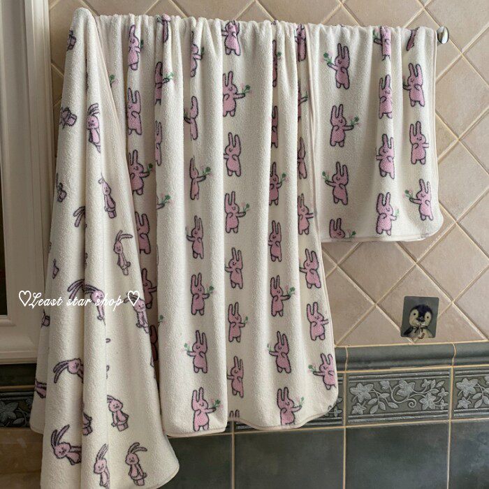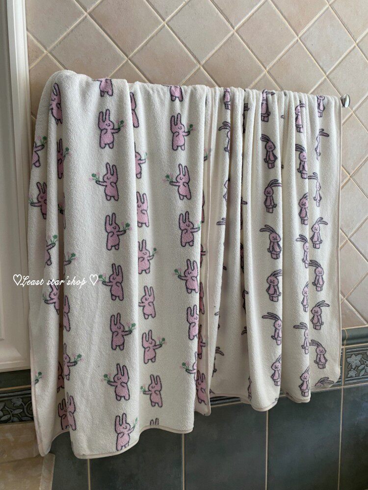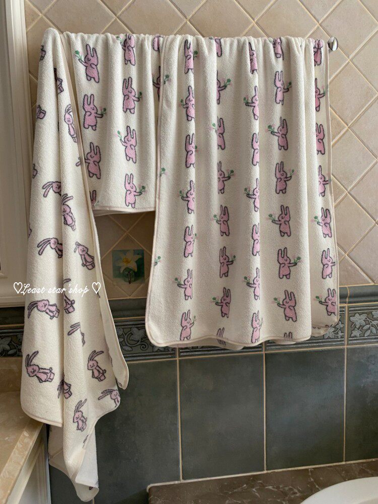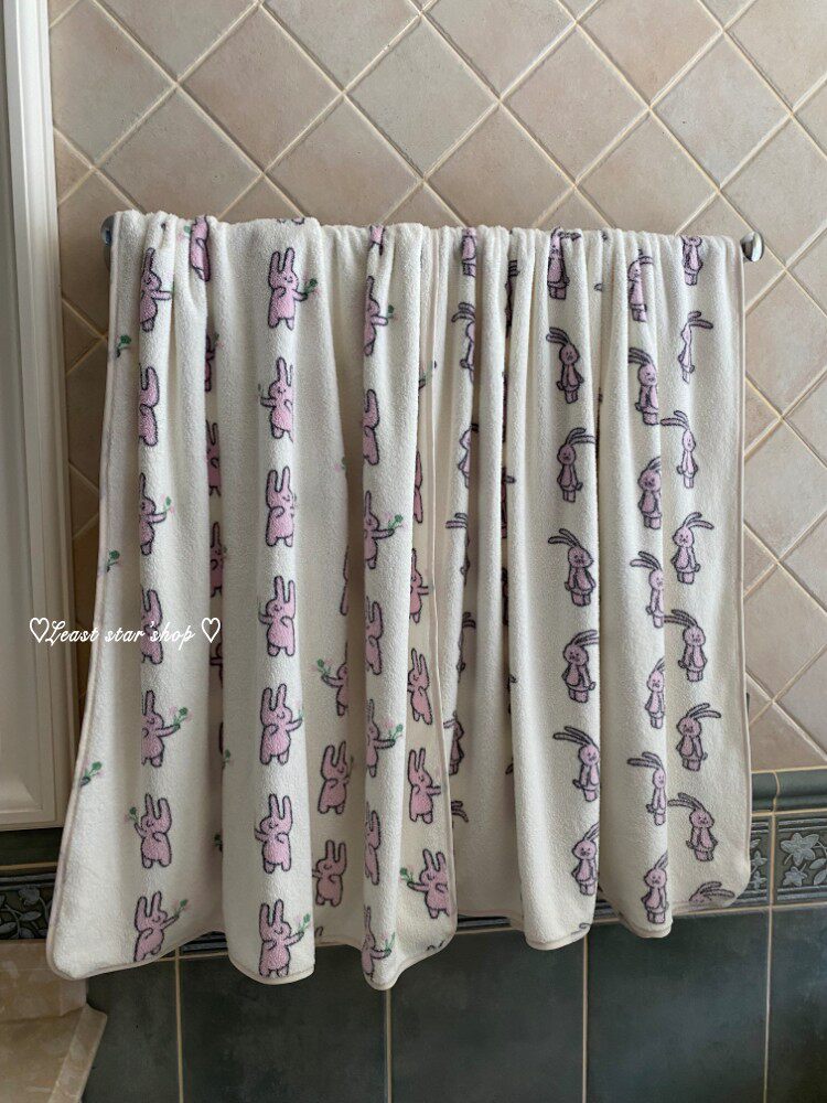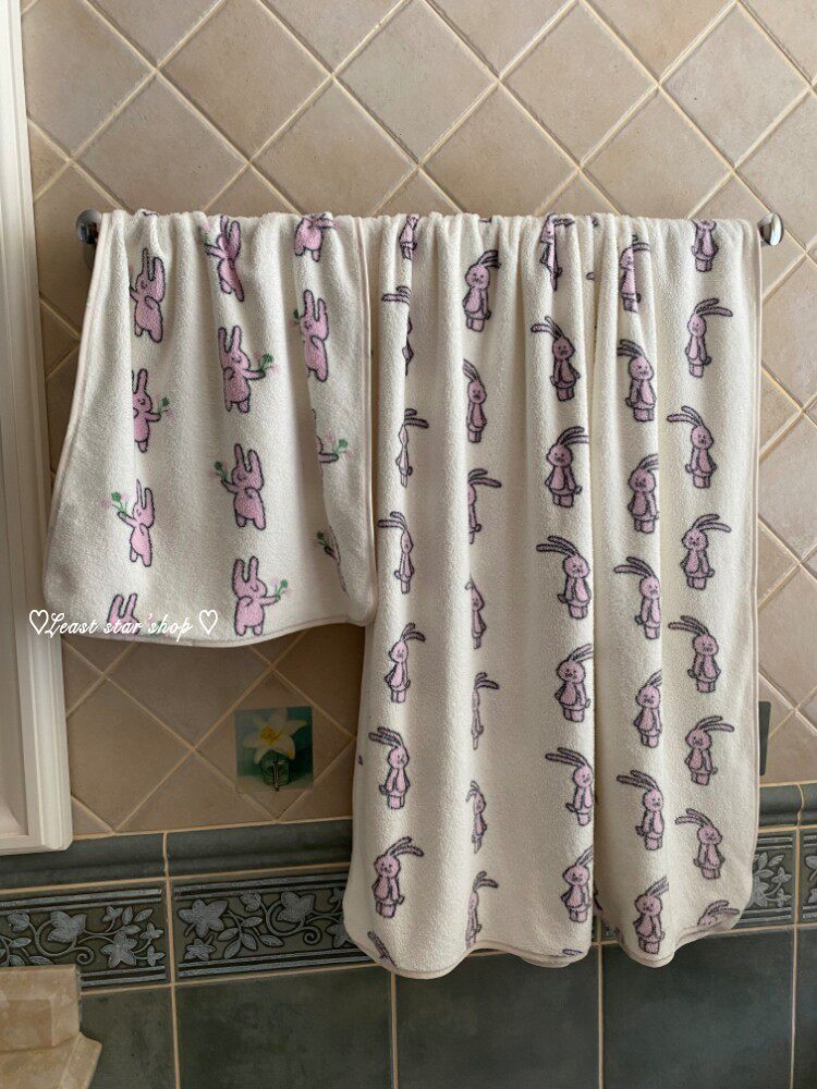 - Полотенце для ванны розовые уши+цветочные кролики