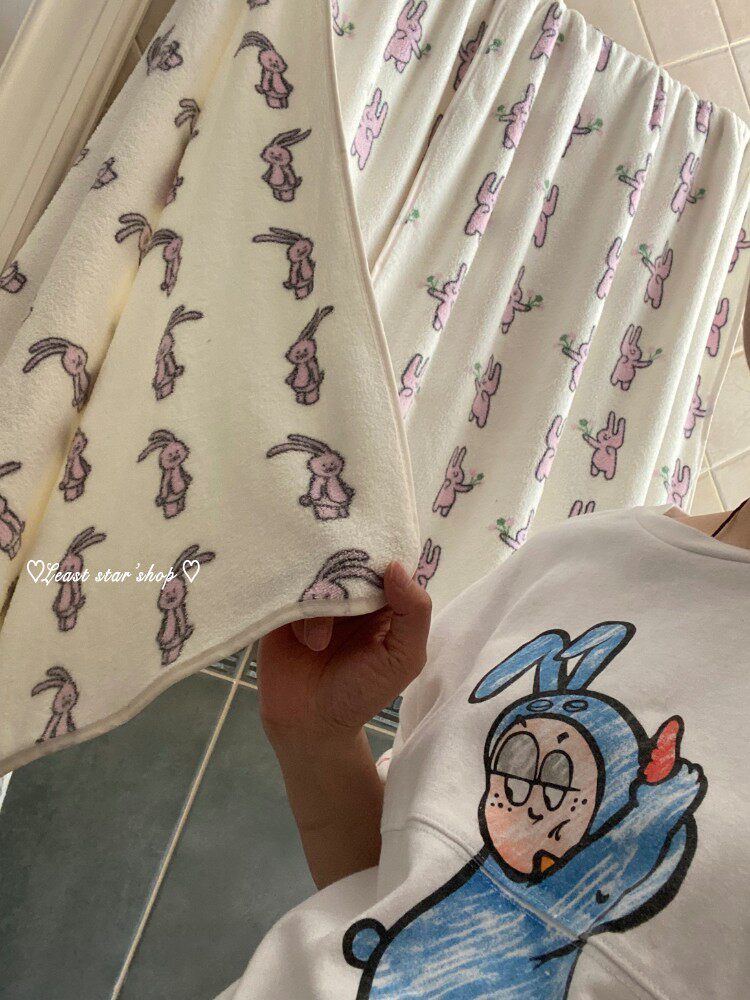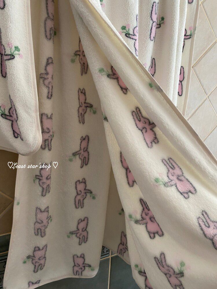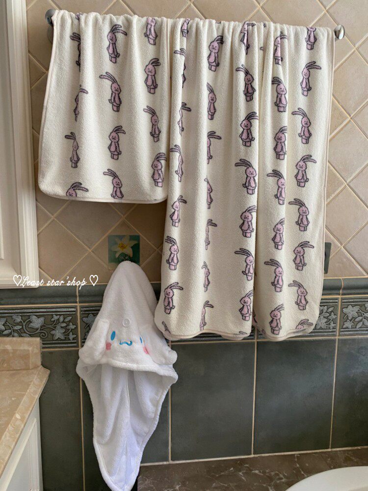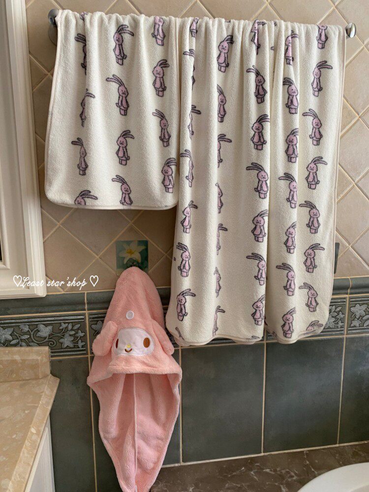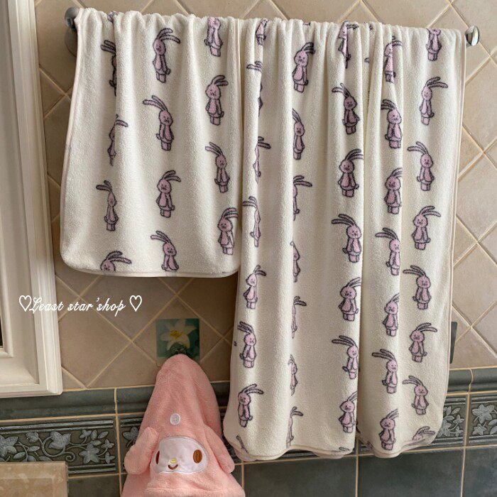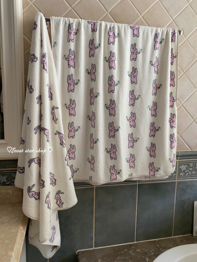 - Полотенце для ванны розовые уши+цветочные кролики