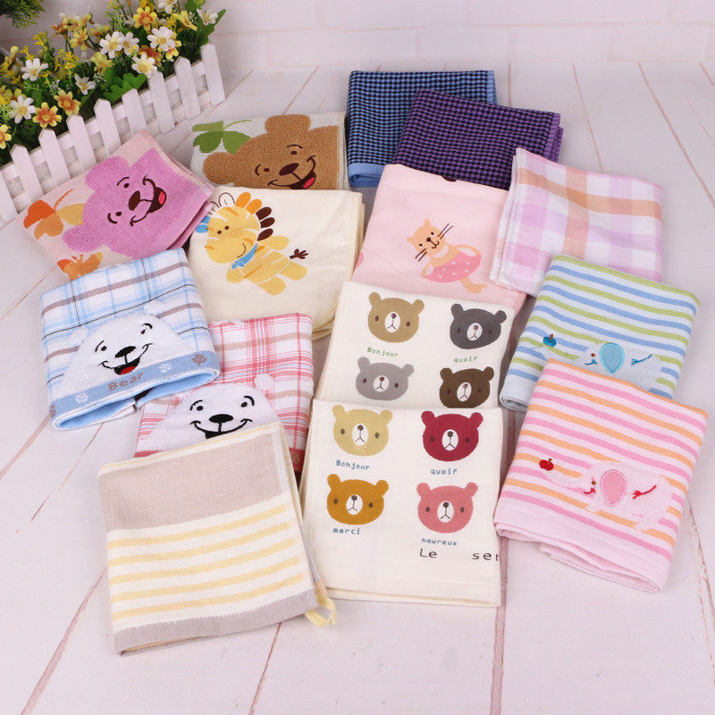 Хлопковый марлевый мультяшный ремешок на шнурке, носовой платок для детского сада, полотенце от пота, прямые продажи с завода, с вышивкой, с медвежатами
