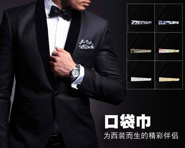 6. Мужская общая любовь - это повязка костюма, и используйте карманные полотенца, чтобы украсить, что может принести различные личные изображения в формальные и неформальные случаи