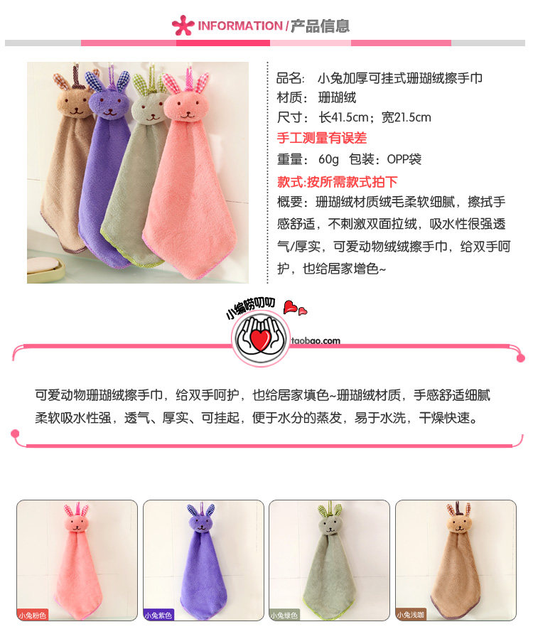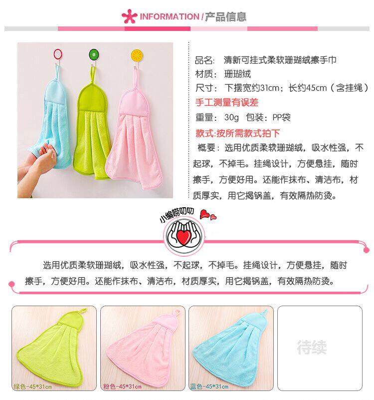 Вытрите шарф, висящий тип, чистый -коттон и милые полотенца 檫 Корейская кухонная ткань Поглощение, вода, девочка вытирайте ванную,