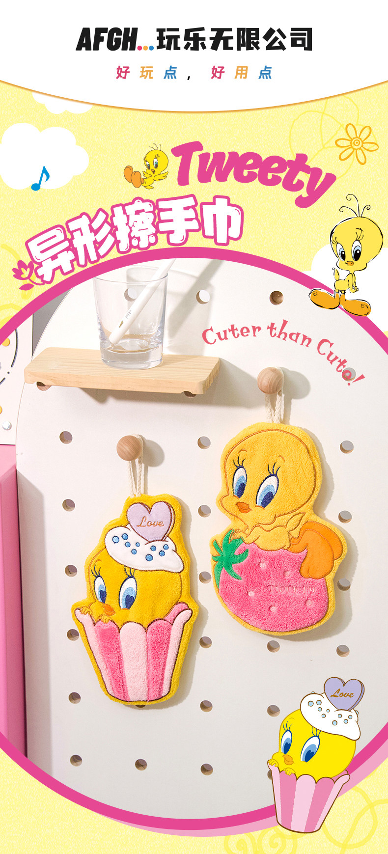 AFGH Подлинный leyong cui di твит твит твит полотенце полотенце висят водяной поглощение мультфильм милая кухонная ванная комната