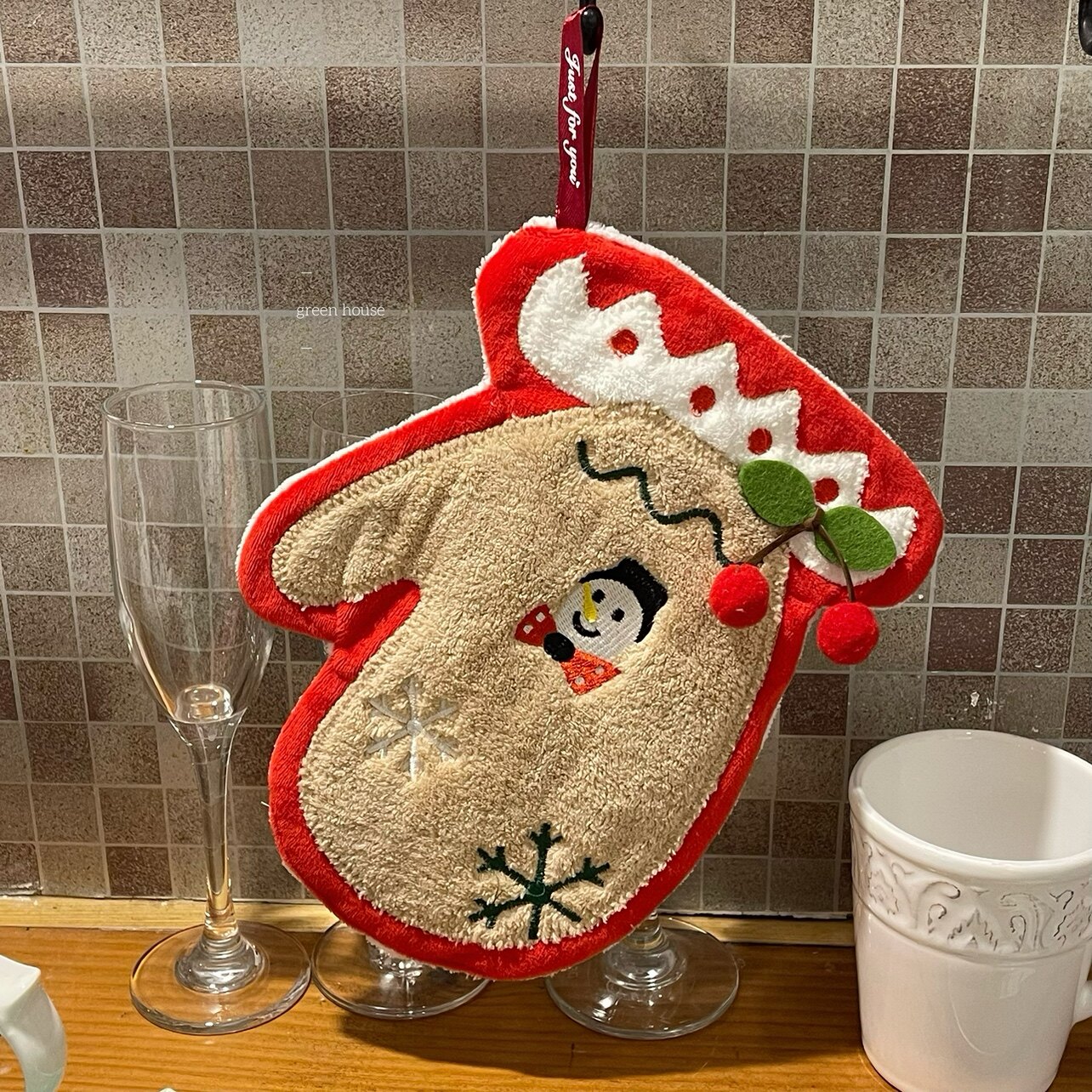 Зеленый дом * Рождественская атмосфера Утолщенная коралловая бархат может подвесить воду -Абсорбентная кухонная ванная комната