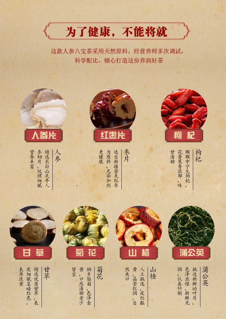 Гинзэг восьми сокровищница чай на одуванчику Хоторн Волфберри Красные свидания, солодка хризантема чайная группа Дополнение трех турелей мужской чай