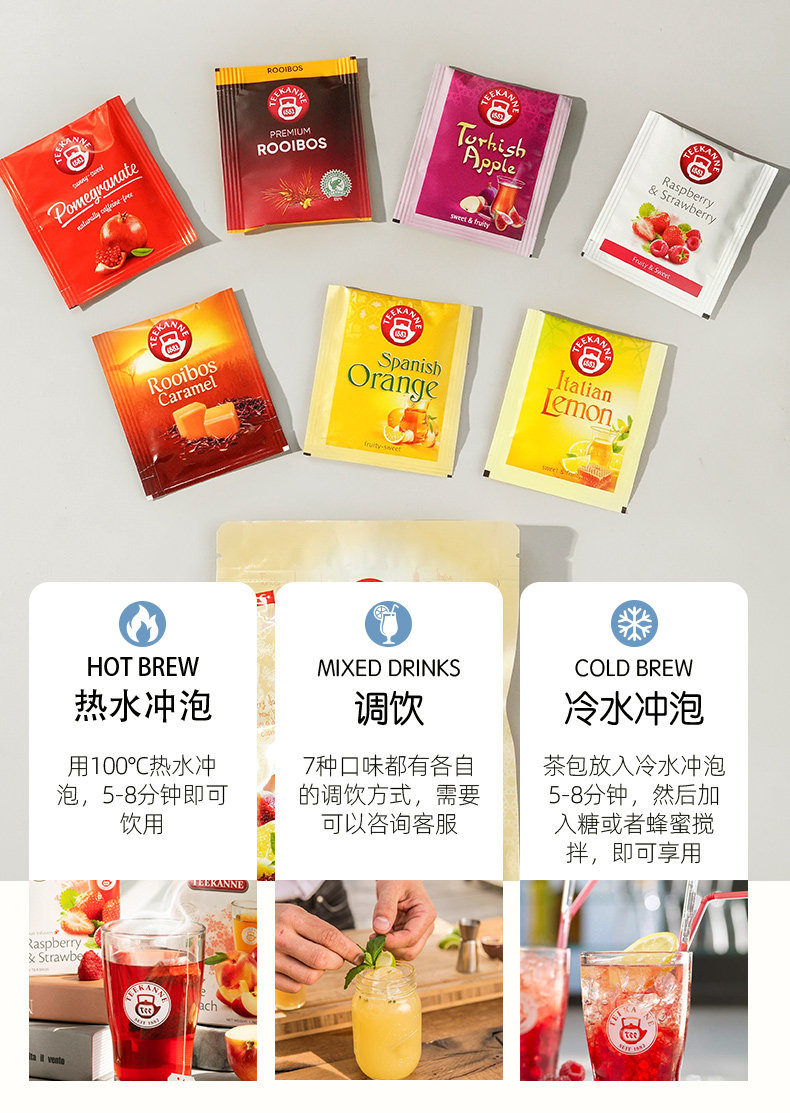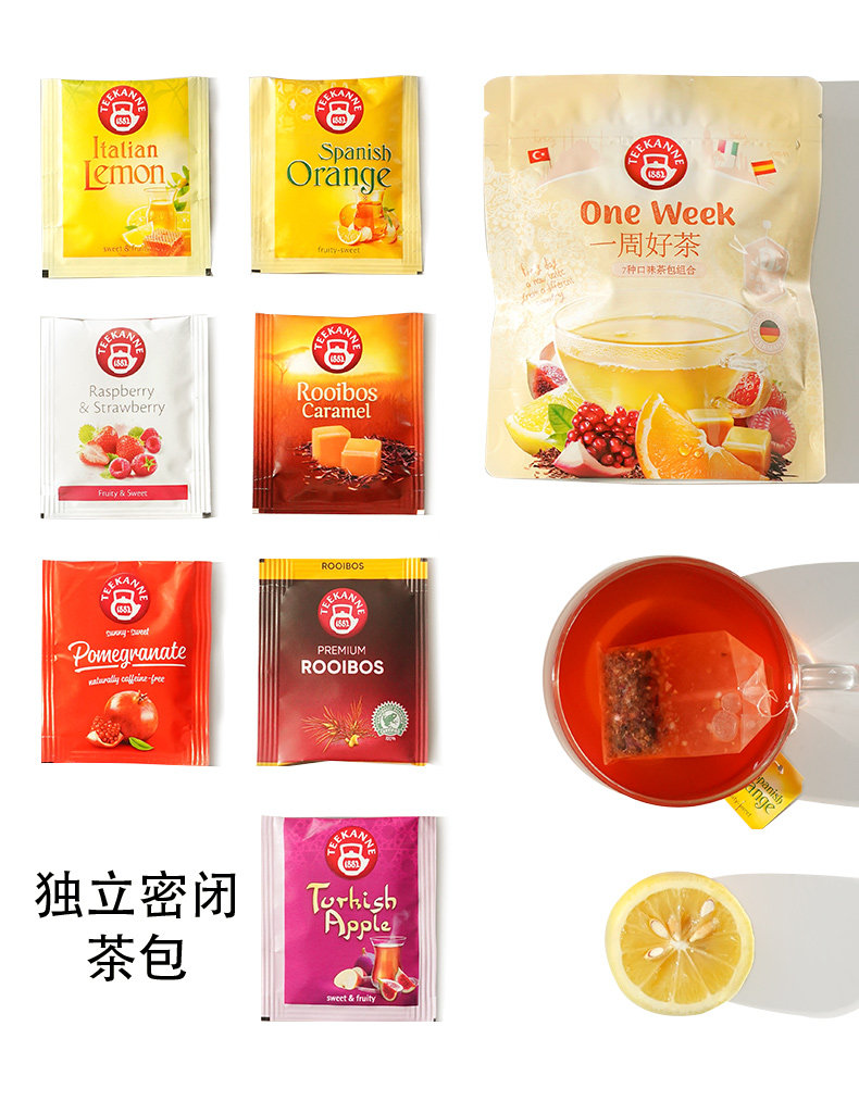 Бесплатная доставка Teekanne Weekly Good Tea, импортный 7 вкусов, цветочный и фруктовый чай, фруктовый чай, комбинированный чайный пакетик, 15 г * 1 пакетик
