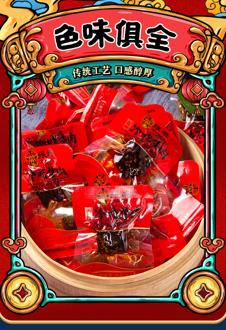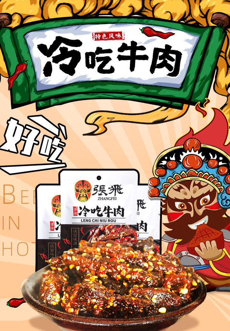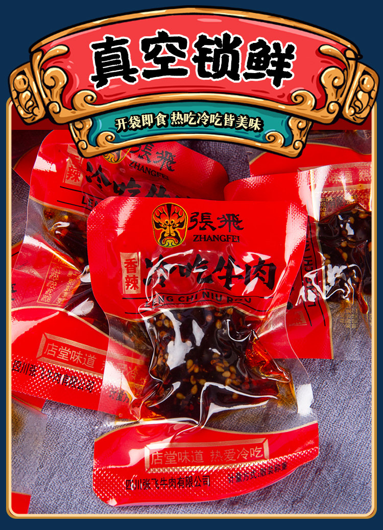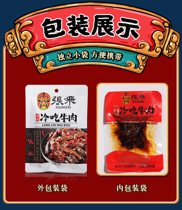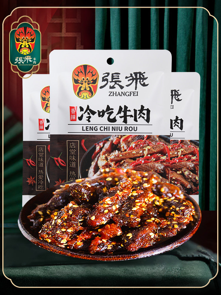 Zhang Fei ест говядина, острая говядина, хвостовик с сичуанькой фирменной кухней, приготовленной на пищу, приготовленной пищи, бесплатной маленькой упаковки 45 г*3 мешки
