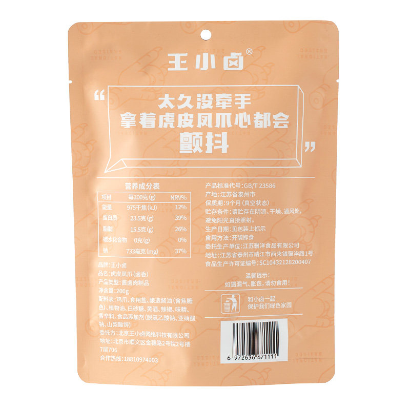 [Wang xiaolou_ the Tiger Skin Phoenix Claw 200g*3 мешки] закуски, тушеной куриные ножки, мгновенная острая острая пища, приготовленная на пищу