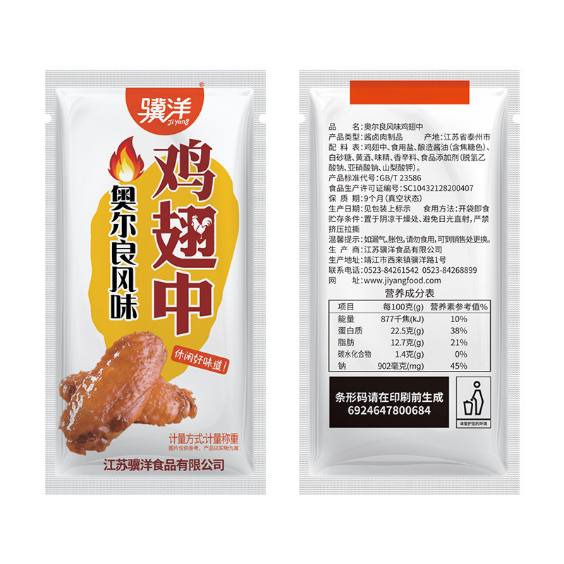 骥洋 Орлеан ароматизированные куриные крылышки 500 г жаркие крылышки Вакуум упакованные вкусные блюда интернет -знаменитость повседневные закуски закуски