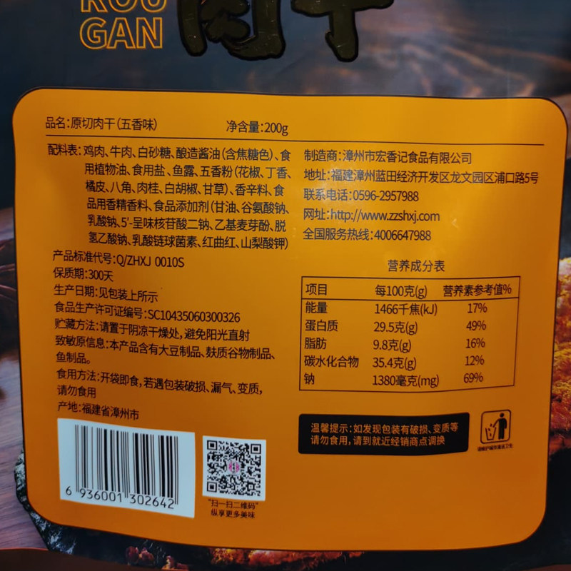 Рекомендуемые повседневные закуски Hongxiangji Jerky Fived Spice Jerky Meat нарезанный мясо нарезанные мгновенные сумки 200G