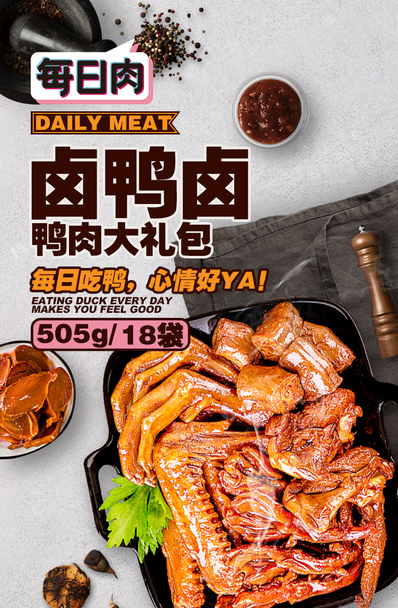 Эксклюзивный [Drap Up_ Duck Meat Gift Pack 505G/18 упаковки] Утиная утиная ладонь приготовлена на приготовление пищи.