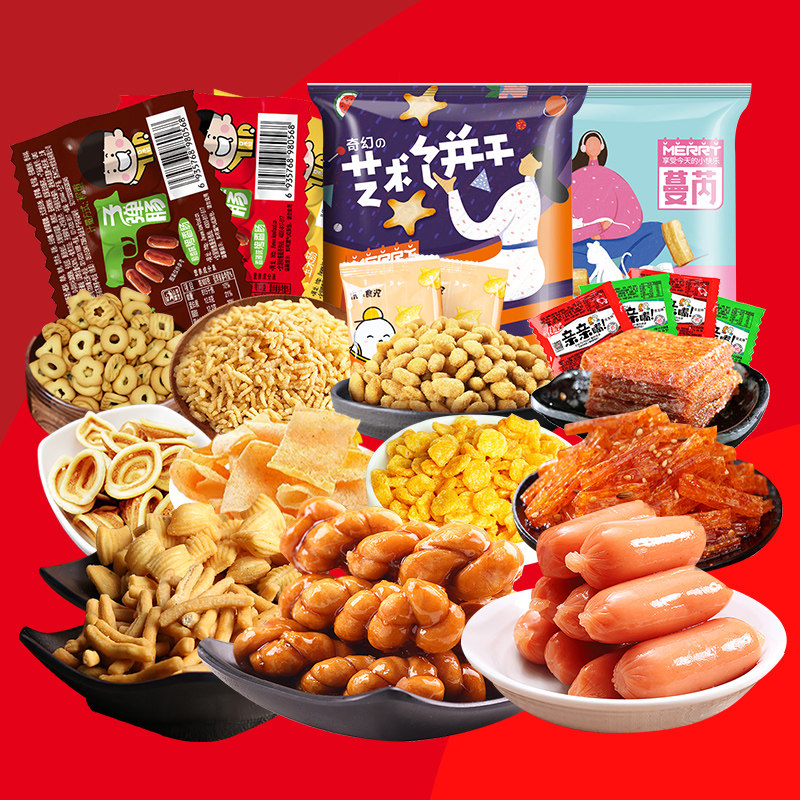 Подарочные пакет с закусками сеть красная взрыв. Повседневная пища пряная пища пряная пища с закуски с закусками одна коробка -носитель Рейтинг подруга