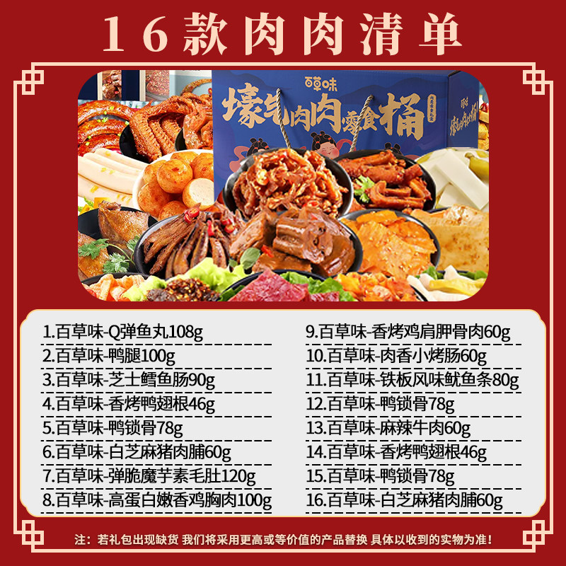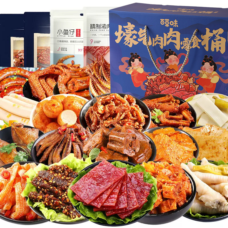 Baicaowei Snacks Gift Pack Вся коробка новогодней подарочной коробки Подарочная коробка Мясотую еду, чтобы удовлетворить вашу тягу и прислать своей девушке острый тушеной мальчик