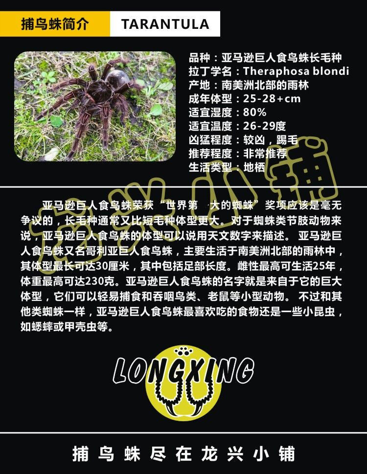 Amazon Giant Eat Bird Spider TB Long Mao Foot выставка 9-20 см. Матери взрослая может достичь 28 домашних пауков
