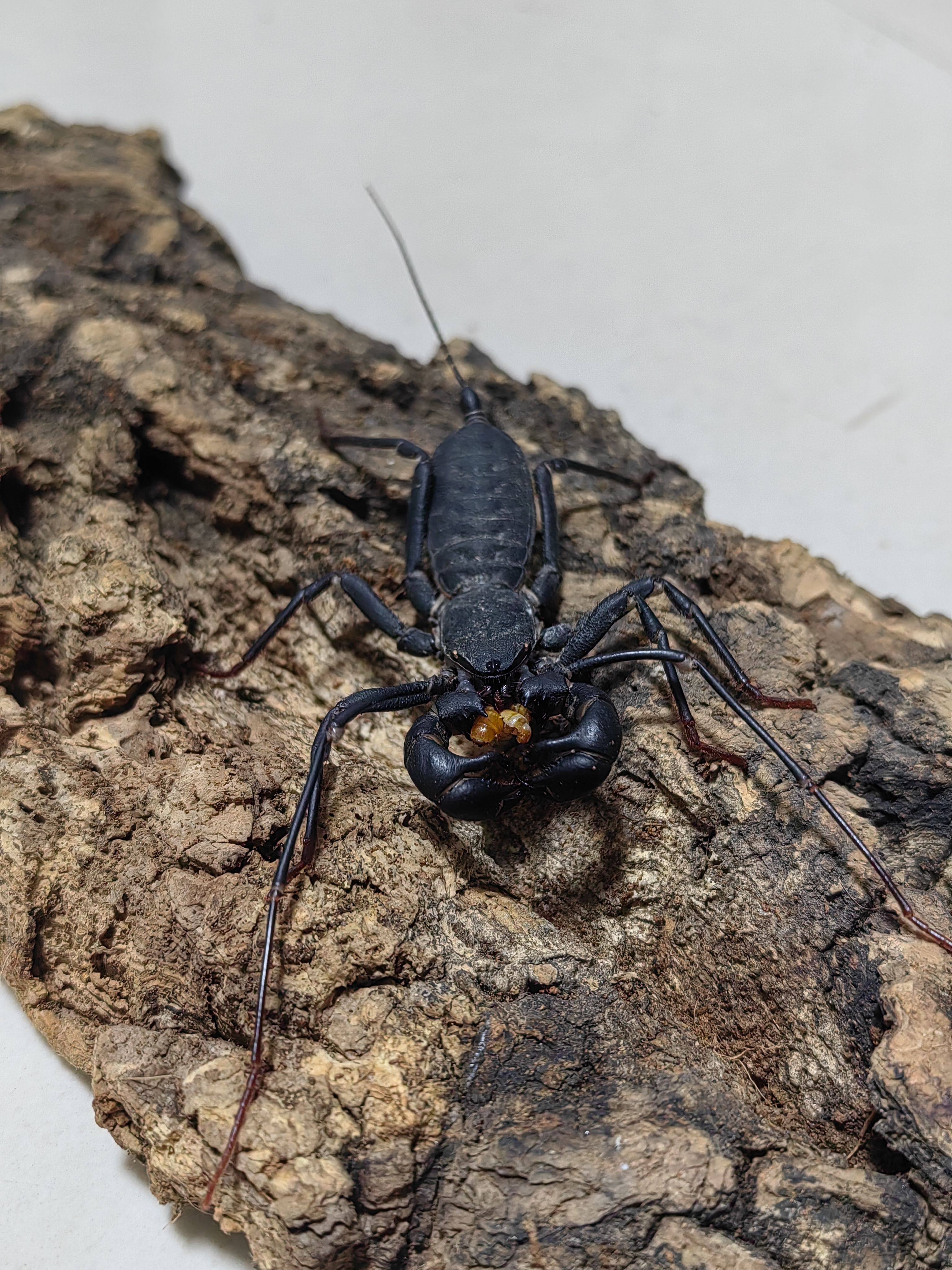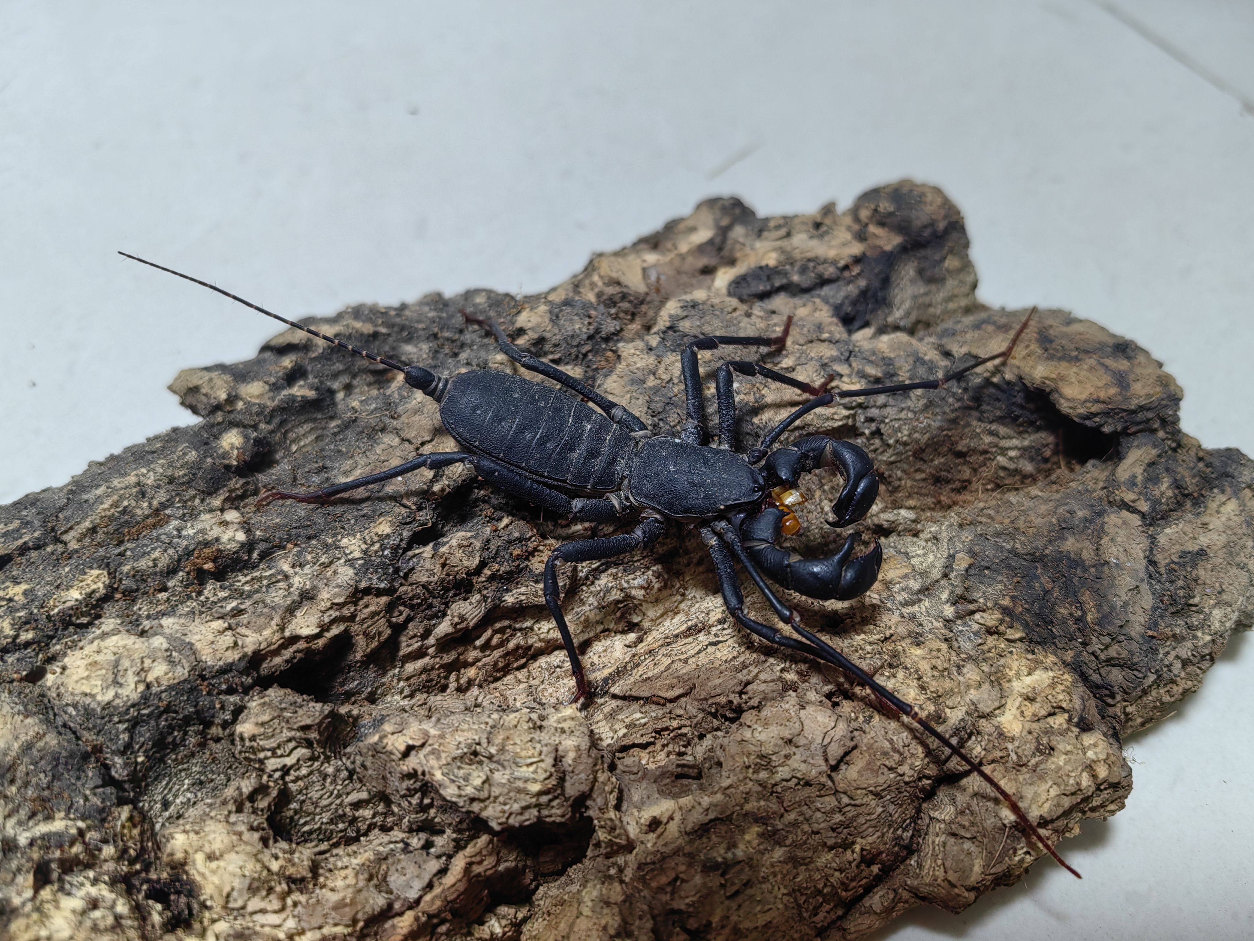 Радарный скорпион-хлыстохвост. Домашний скорпион из тропических лесов послушен и нетоксичен, его могут использовать новички, а для начала его можно выращивать в группах.