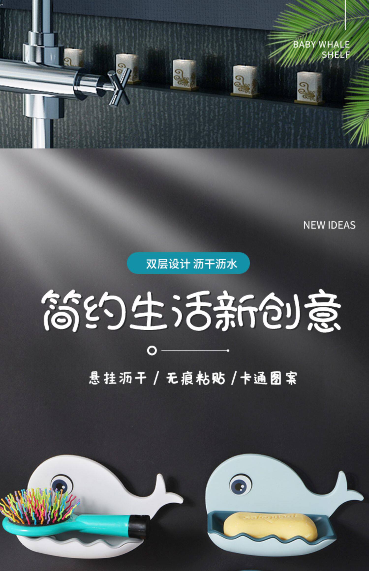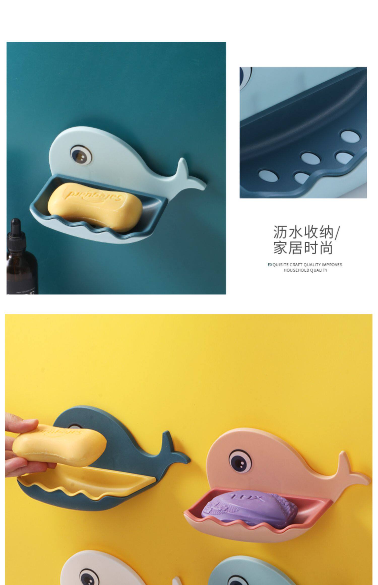 Мыльница с китом, мыльница, милая настенная присоска без перфорации, настенная стойка для слива для унитаза и ванной комнаты
