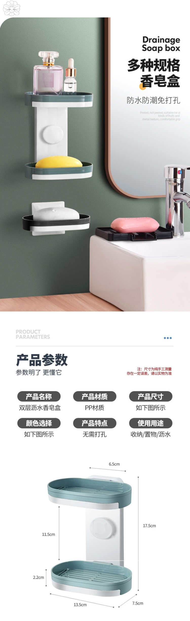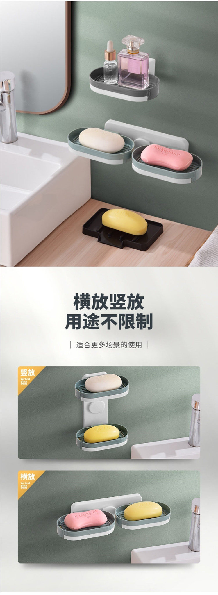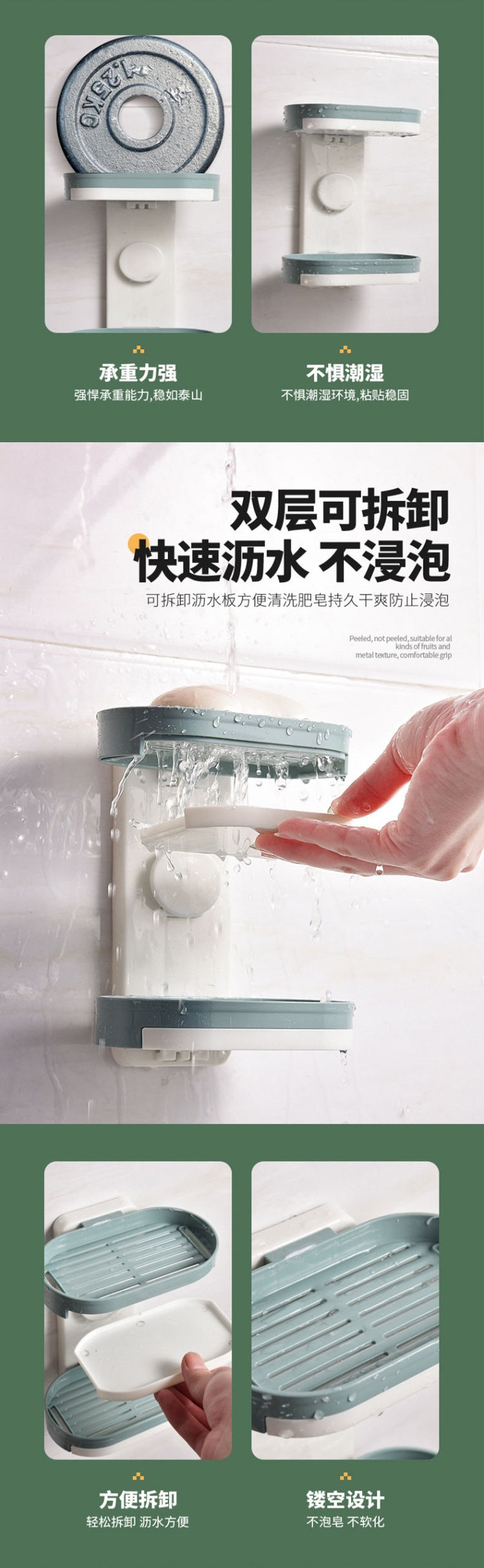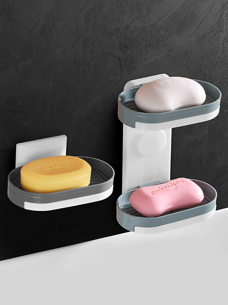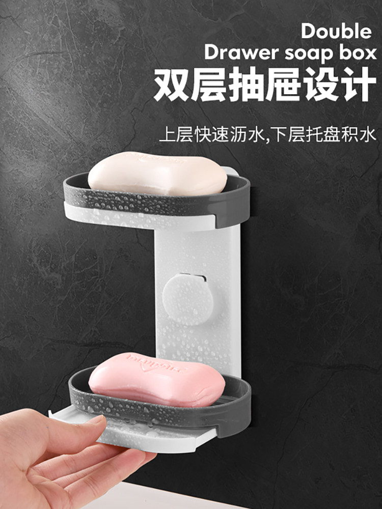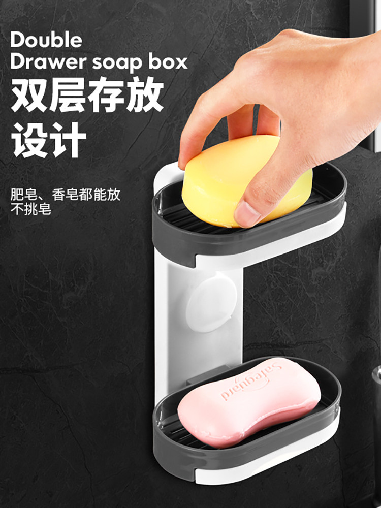 Мыльная коробка -Бесплатная пунша всасывающая чашка -настенные полки с творческим двойным слоем дренажируют домашние туалетные ванную комнату для ванной комнаты