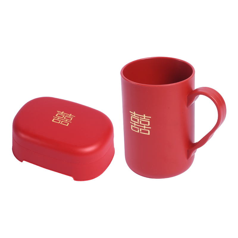 Зубная щетка, мыльница, красный ополаскиватель для рта, мыло для влюбленных