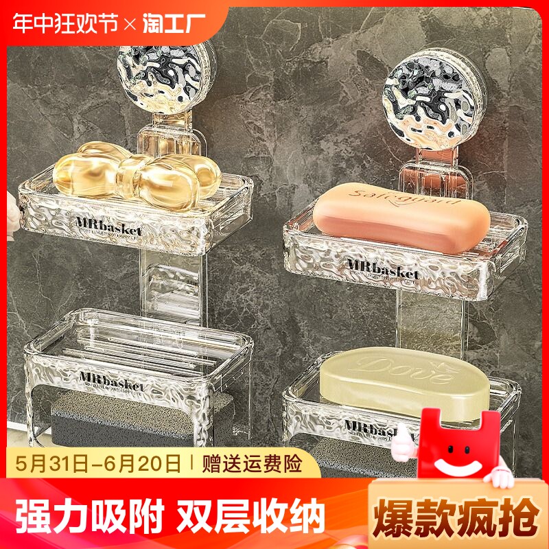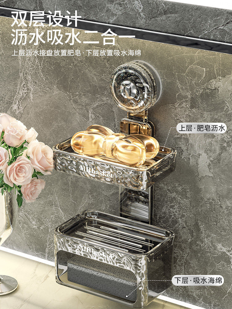 Всасывающая чашка мыльная коробка стена -Дом -безжильковая домашняя стена ванной комнаты двойная полка двойная мыльная коробка