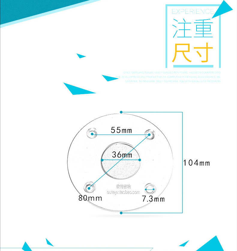 Размер: высотой 87 мм, диаметр 104 мм, 41,5 мм в средней колонке, диаметр 36 мм внутреннего отверстия, расстояние отверстия отвертого отверстия 80 мм, диаметр отвертка 7 мм, 3 мм, (разность ошибок размера±1-2mm)
