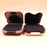 Небольшая упаковочная коробка/ящик для хранения слухового аппарата/защитная коробка/Внешний вид: длиной 6 см, шириной 6 см, высота 2,7 см.Диаметр круговой губки на крышке составляет 4,5 см.