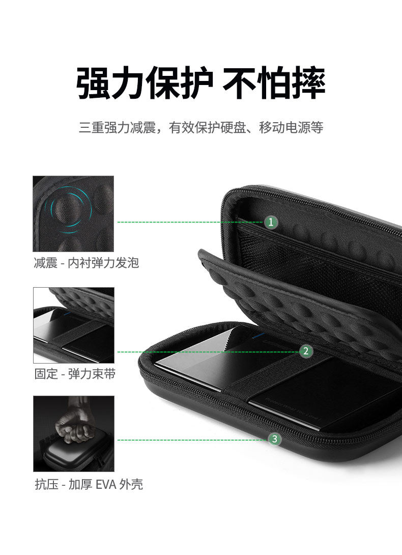 绿联 Защитный чехол, коробка для хранения, противоударные наушники, USB-флеш-накопитель с зарядкой, зарядное устройство, мышка, цифровой портативный шнур питания с аксессуарами, 2.5 дюймов