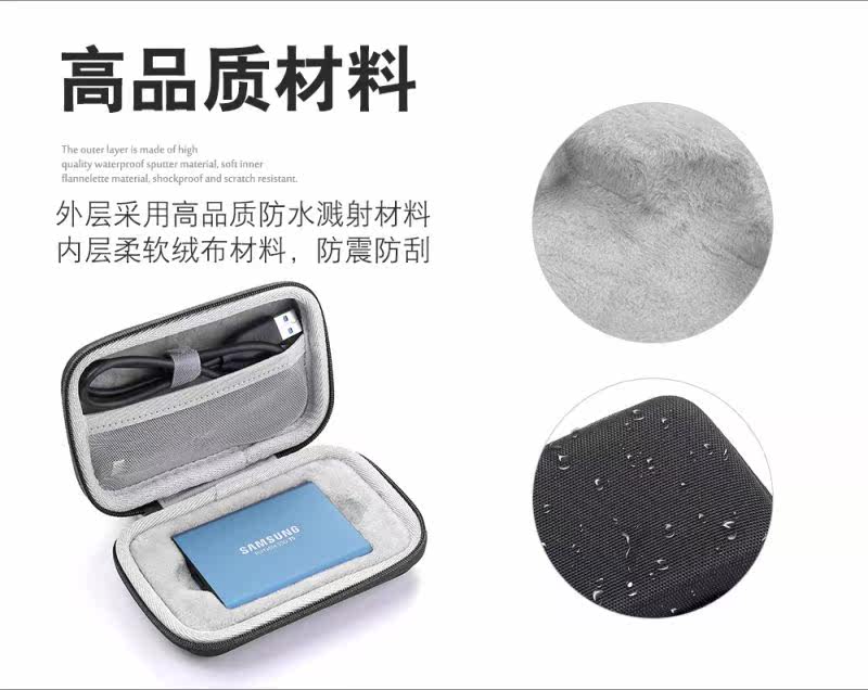 Samsung T5/T3 Mobile Hard Disk Anti -shockpraint Sag с защитной оболочкой 1,8 -дюймовой сплошной мобильной коробки для хранения с твердым хранением.