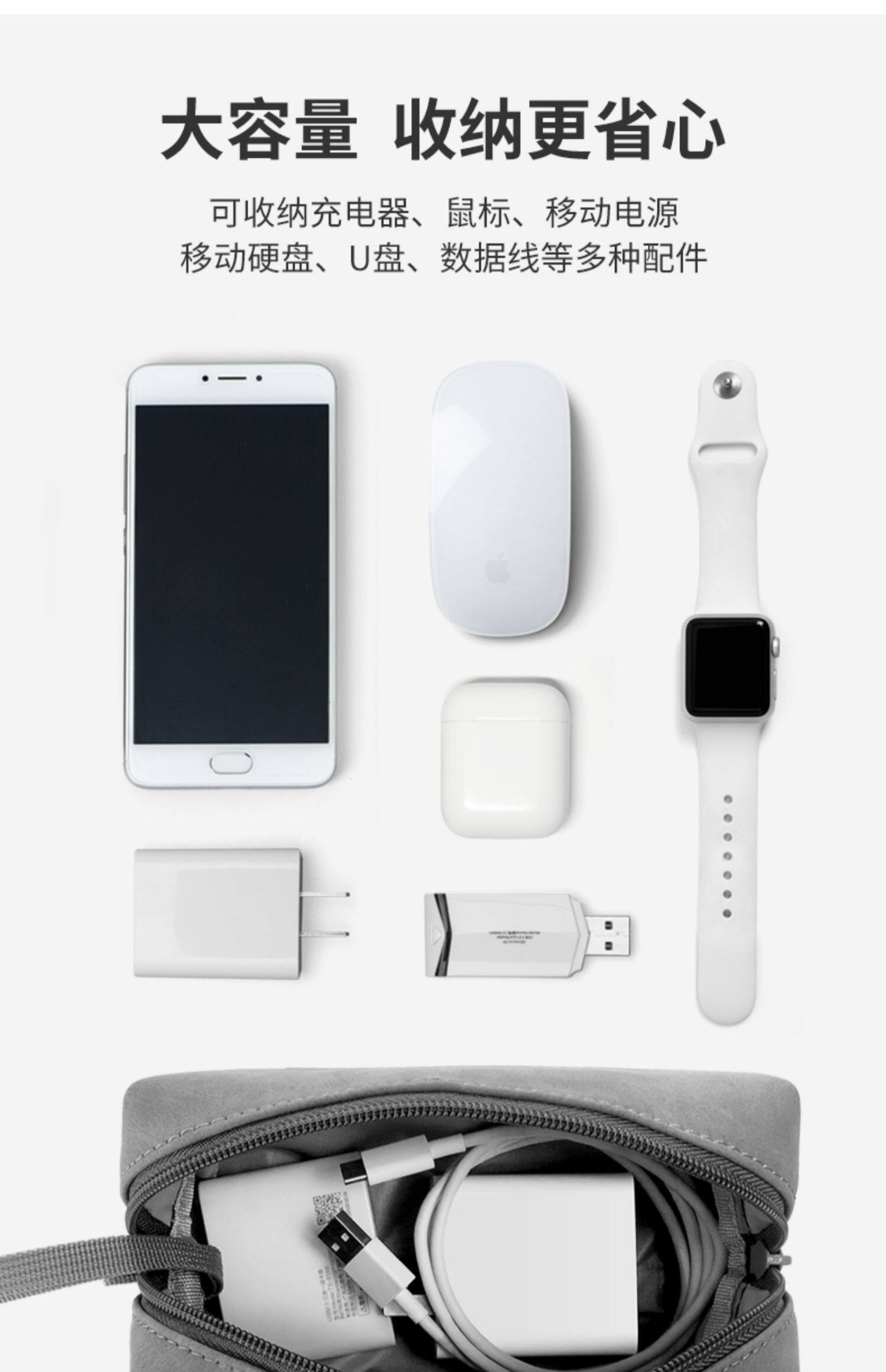 Logitech, apple, сумка-органайзер, мышка, цифровой ноутбук, шнур питания с зарядкой, наушники, USB-флеш-накопитель, портативная совместимая сумка для хранения, зарядное устройство, macbook