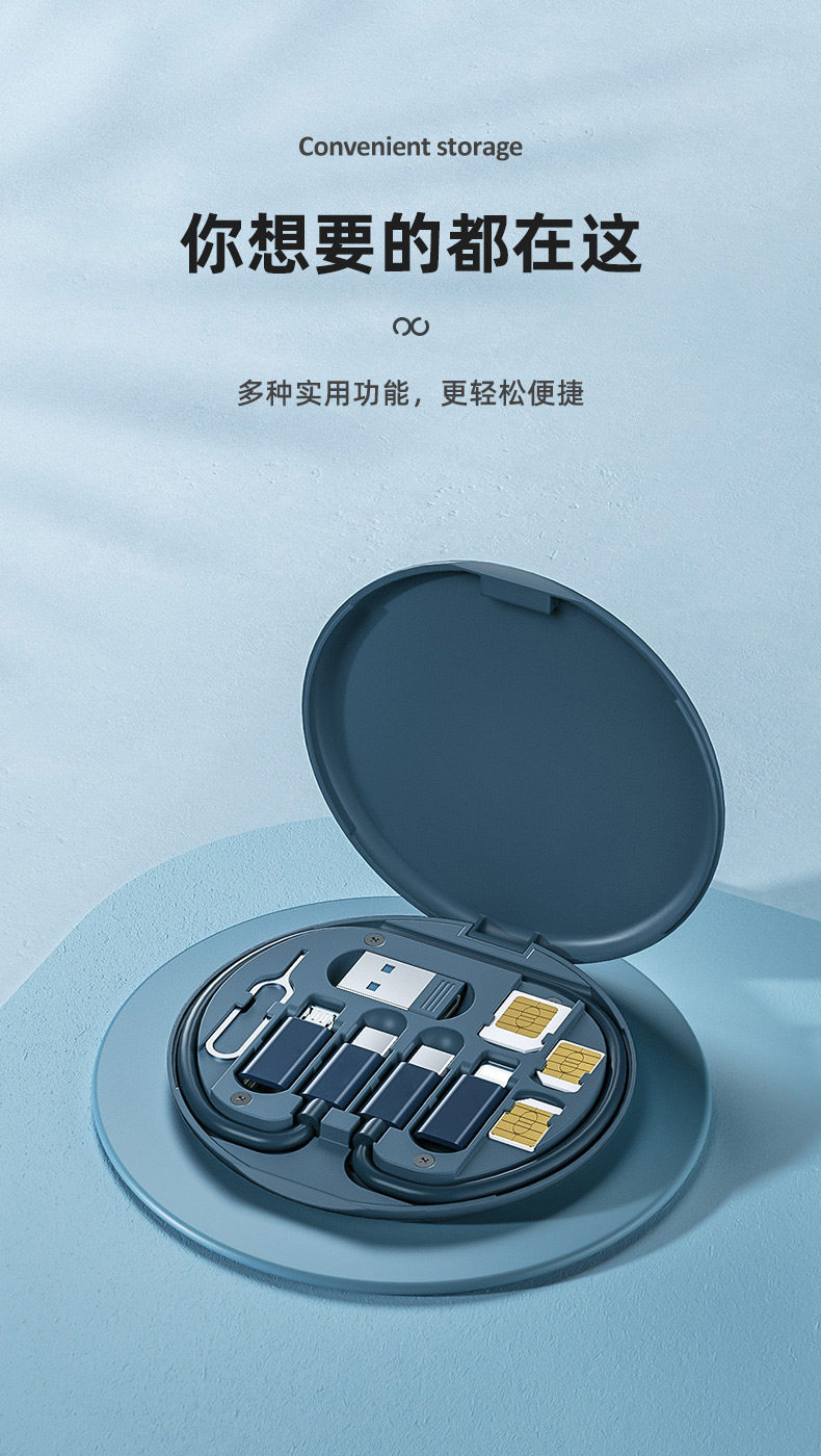 - [Gem Blue] Принесите кабель данных о быстрого заряда 60 Вт ◆ Карточная игла ◆ Разнообразие преобразования интерфейса