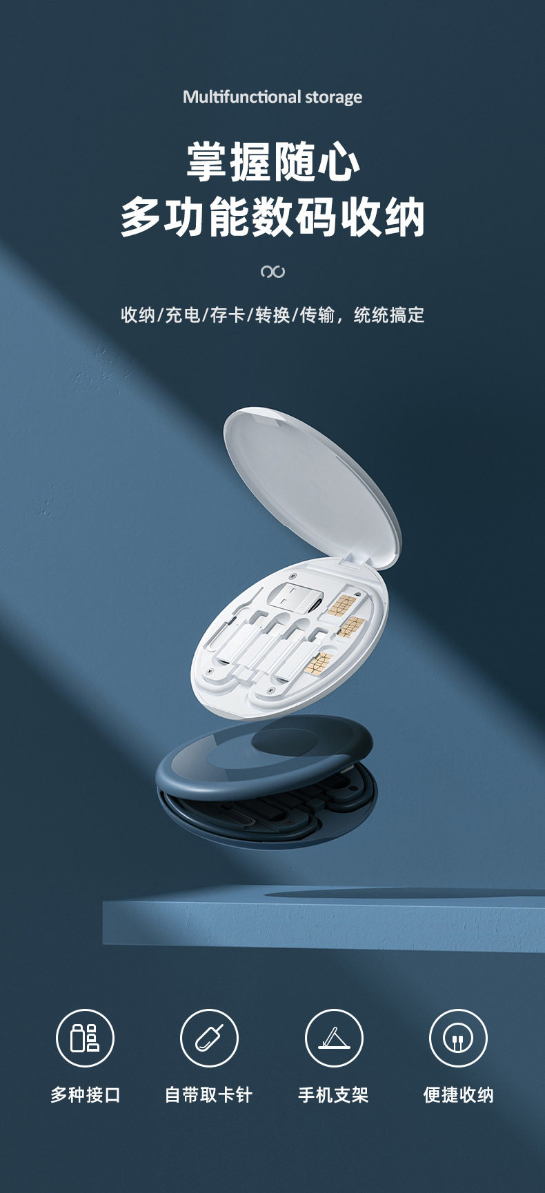 Универсальная цифровая коробка для хранения, зарядный кабель, универсальный портативный держатель для телефона, быстрая зарядка 60W