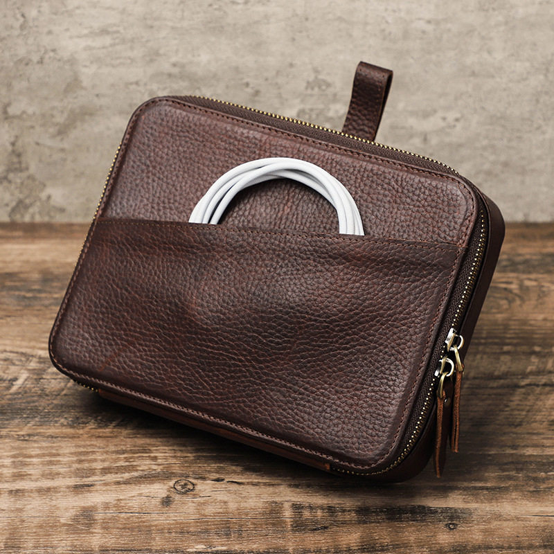 Ретро часы для жирной кожи, ремешок для часов, дорожная коробка для хранения для путешествий, цифровая цепочка с молнией, сумка-органайзер, зарядный кабель, наушники, из натуральной кожи