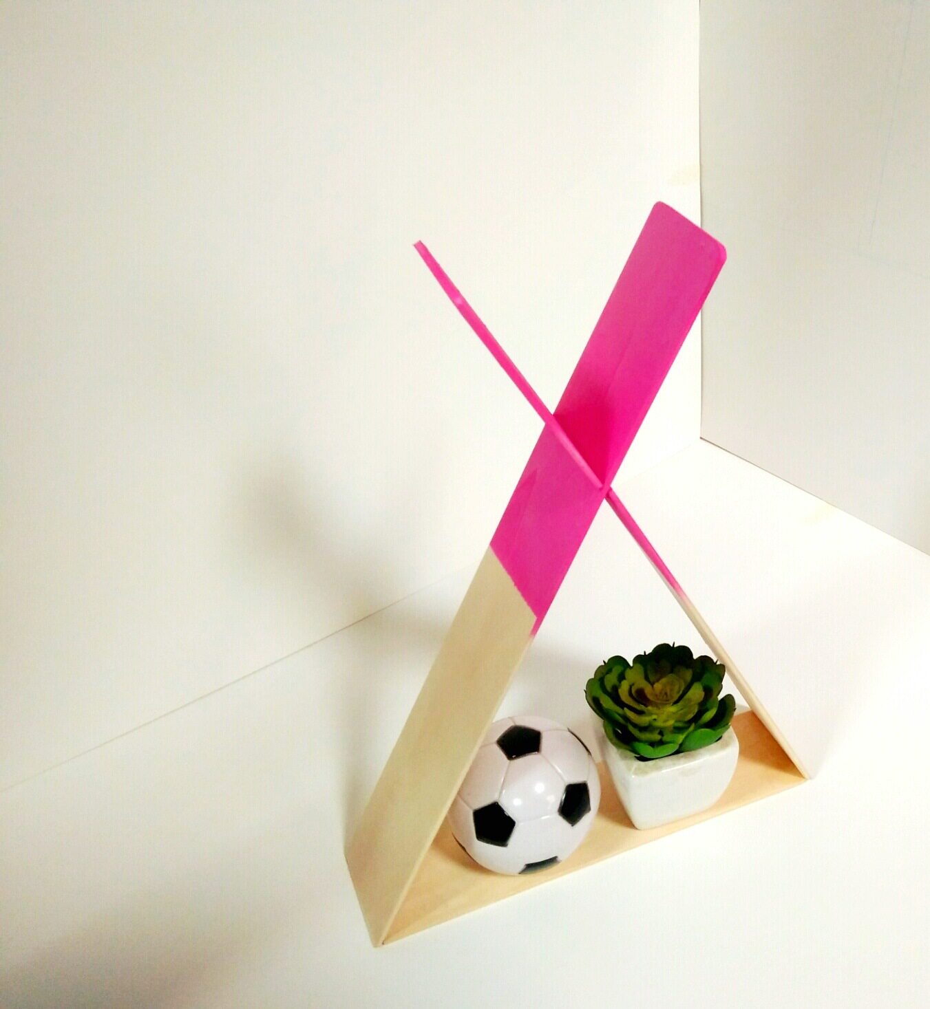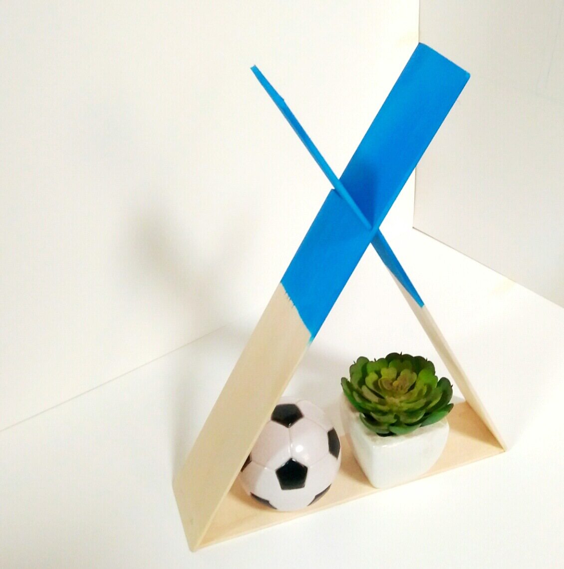 Новый простой организатор хранилища поселений может удобно украсить деревянный треугольник стойки на стене