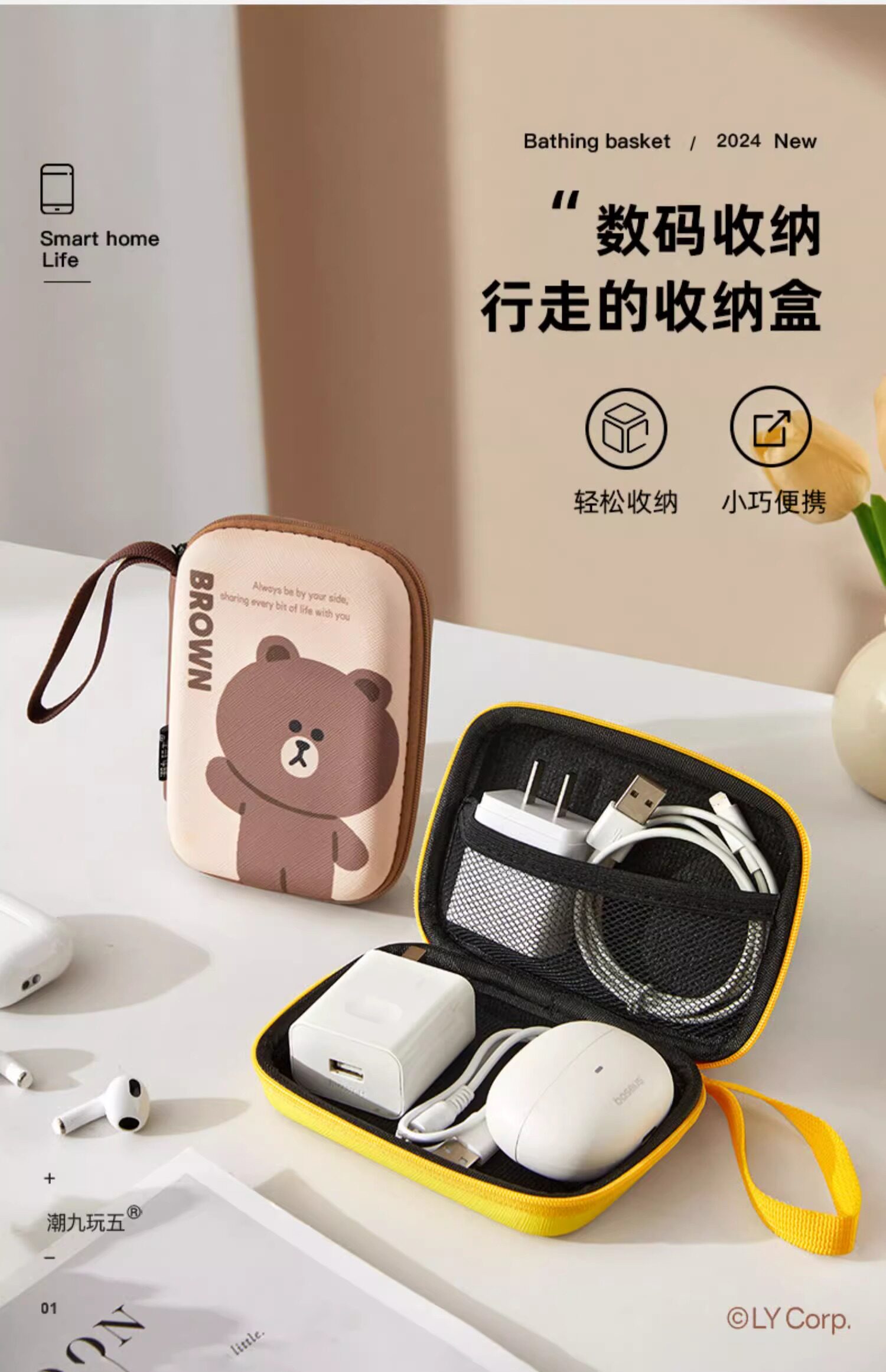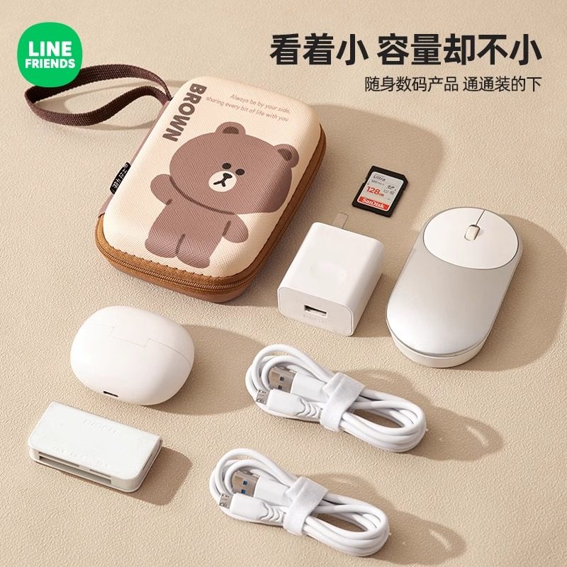 Line friends, цифровая сумка-органайзер с аксессуарами, наушники, зарядное устройство, мобильный телефон, зарядный кабель, защитный чехол, коробка для хранения, батарея с зарядкой