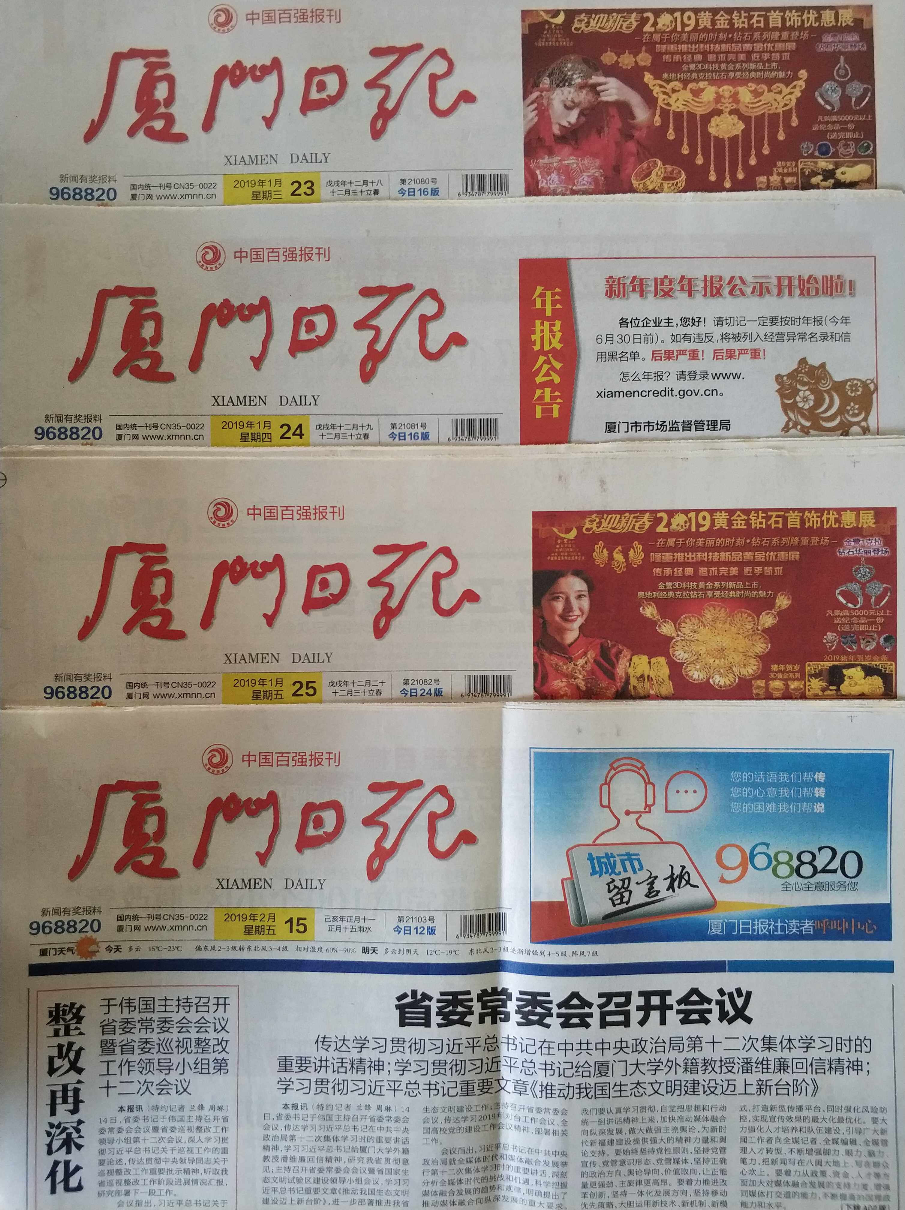 Недавняя назначенная дата «xiamen ежедневно» новые газеты, одна цена за единицу, большое количество количеств может быть соответствующим образом дисконтировано