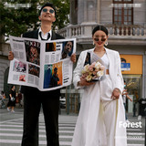 Студия модная улица Стрельба европейская и американская обложка плаката Внешняя сцена Туристическая стрельба творческая съемка
