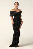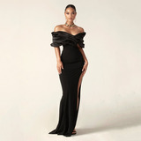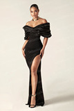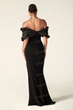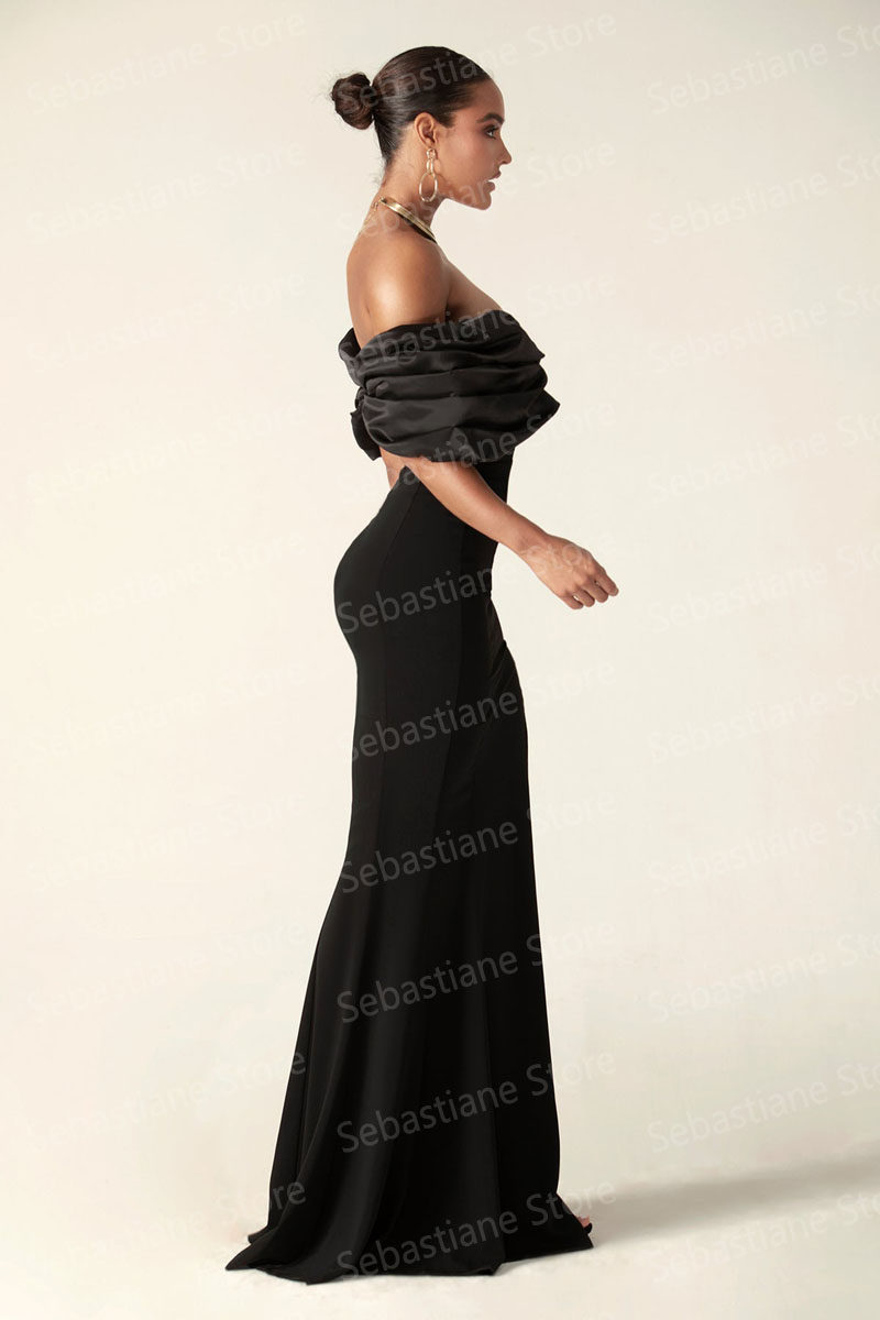 Черные простые элегантные вечерние платья русалки атласные плиссированные o