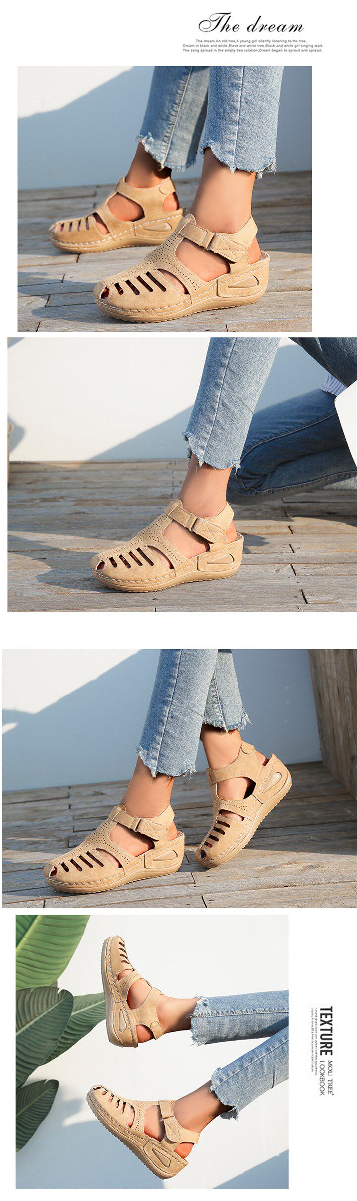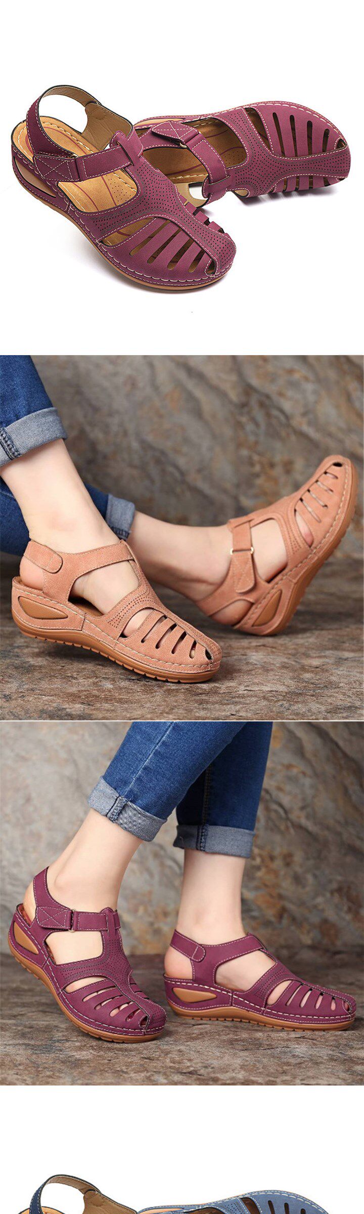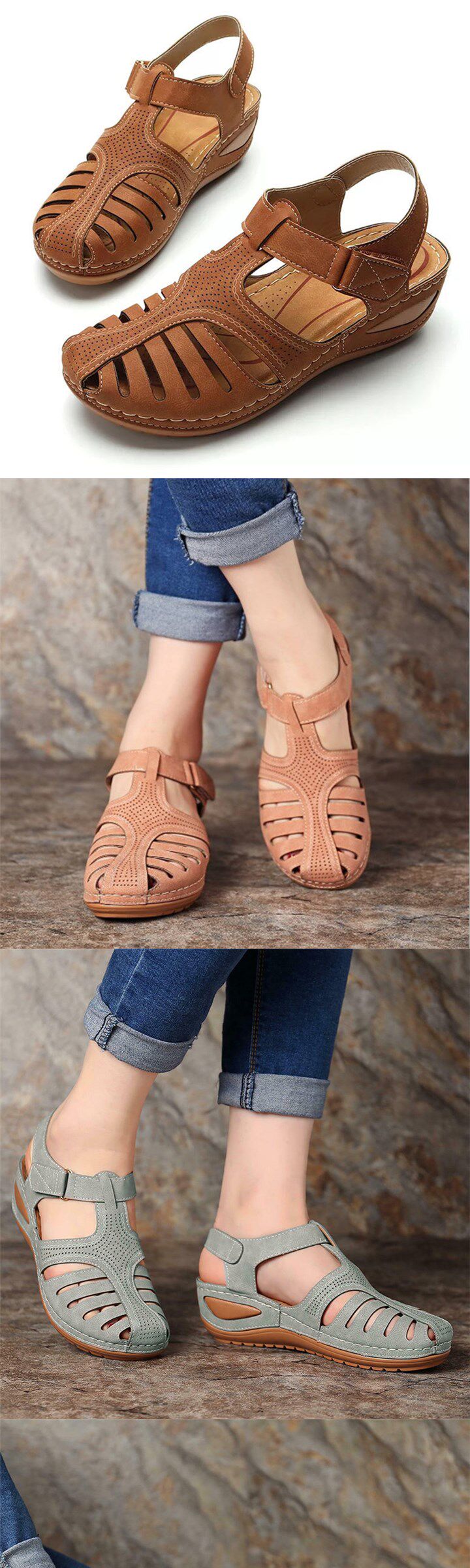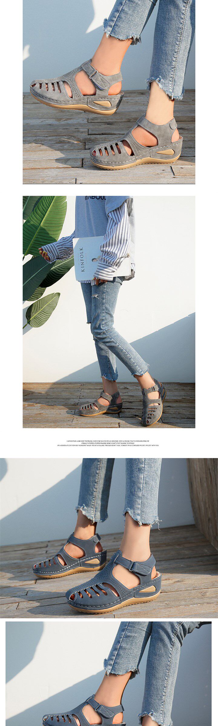 Новые продукты Женщина летние винтажные клиновые сандалии сандалии пряжка для повседневного шитья