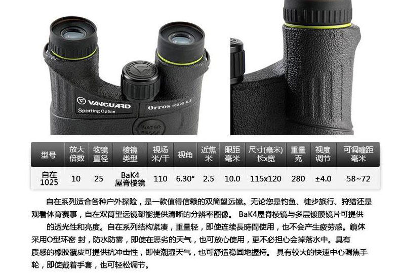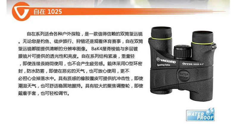 Vanguard (Vanguard) Free Orros 1025 водонепроницаемый и анти -фог 10x Twin Tube Telecope 10x25
