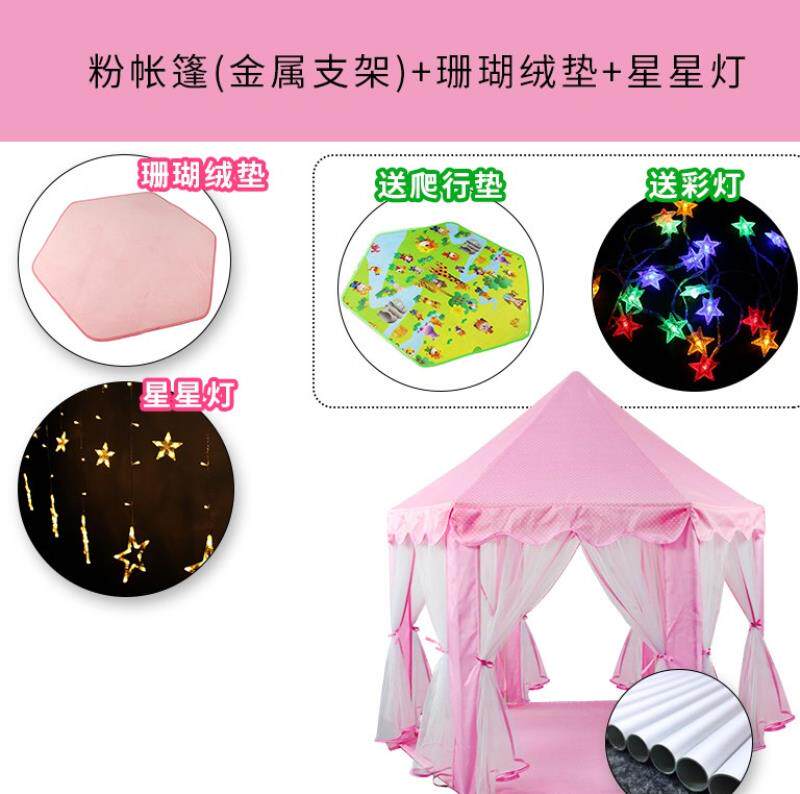 - Розовая палатка+бархатная прокладка+звездный свет (металлический), давая лампу+ползающая прокладка