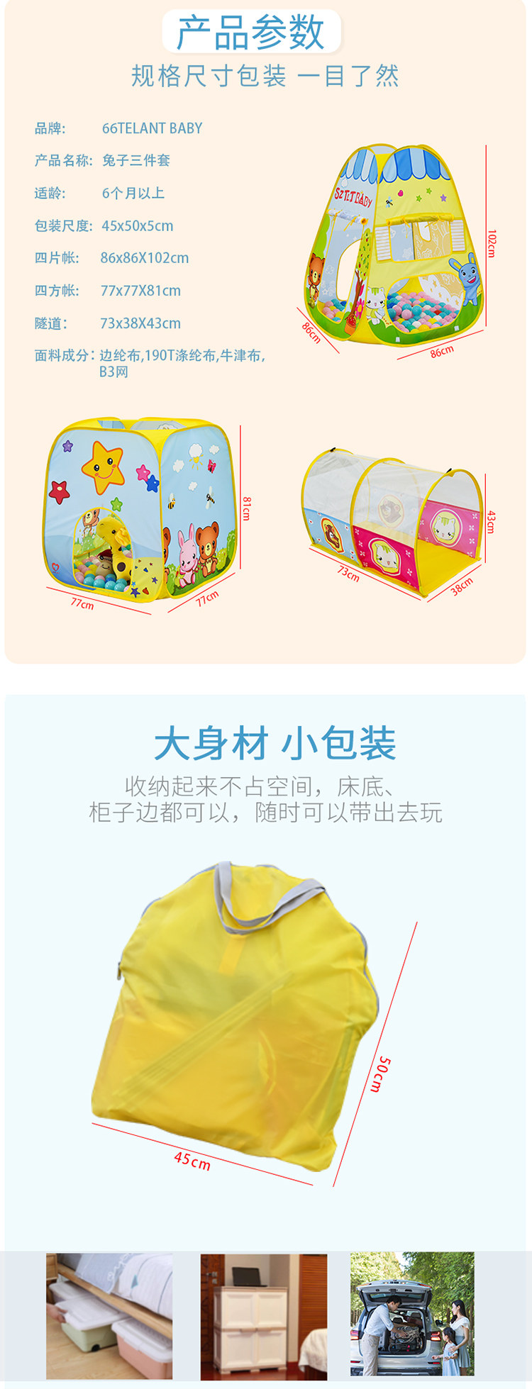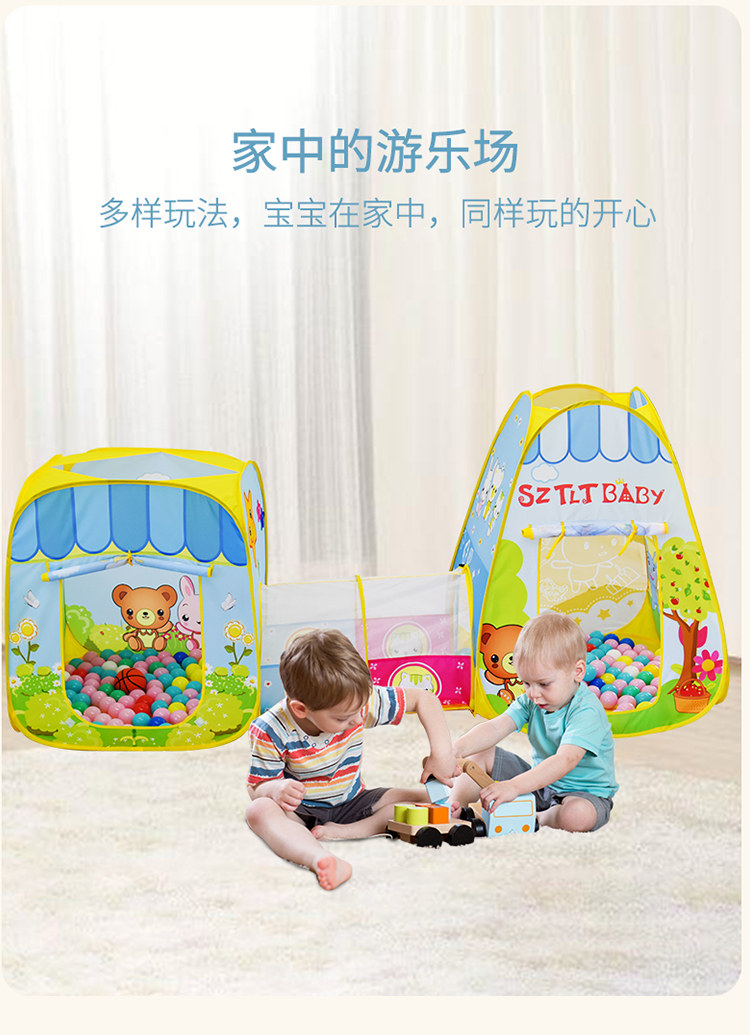 Палатка, мультяшный кролик, туннель, бассейн с шариками, комплект, домик для парков развлечений, игры в помещении, игровой домик, 3 предмета