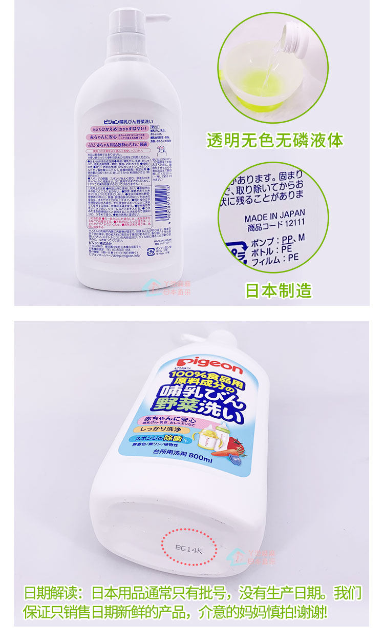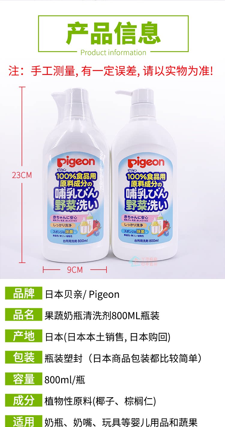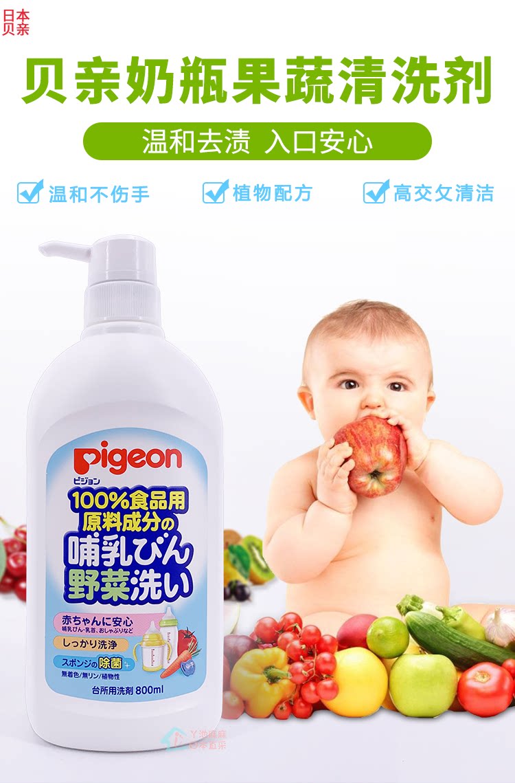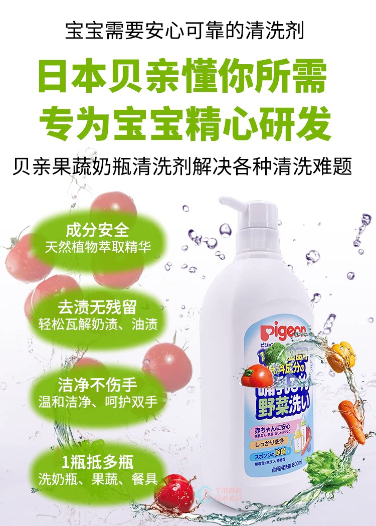 Pigeon, моющее средство для бутылочек, гигиеническое японское чистящее средство для фруктов и овощей, 800 мл