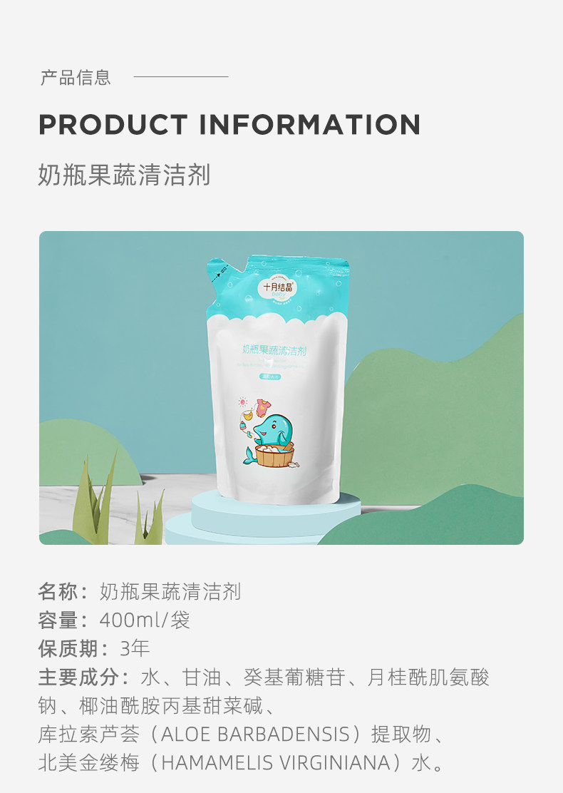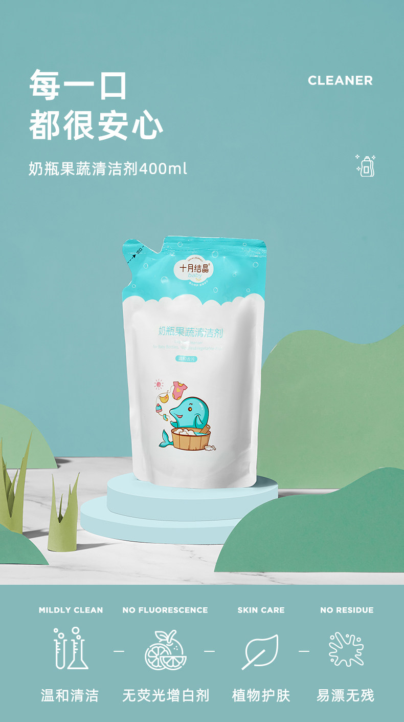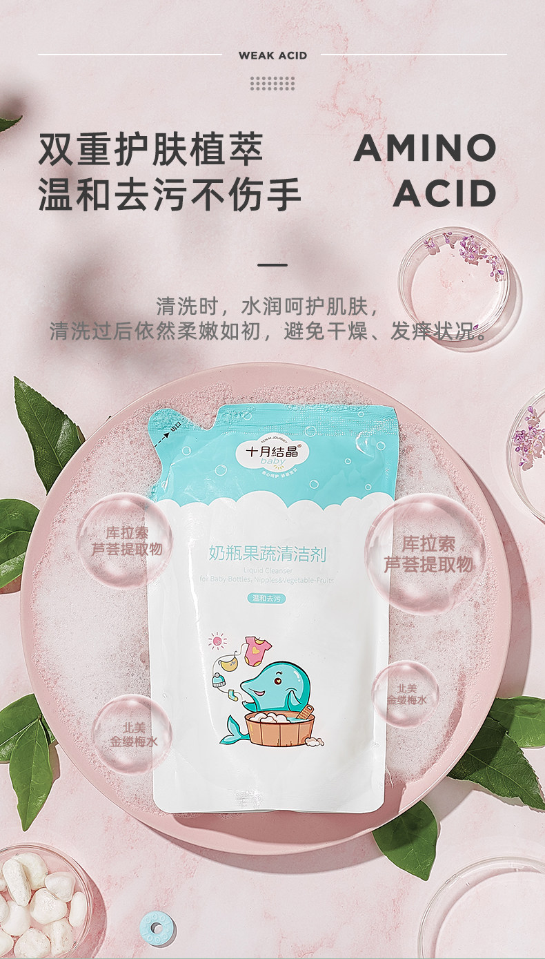 十月结晶 Моющее средство для бутылочек, гигиеническая посуда, детское чистящее средство для фруктов и овощей для новорожденных