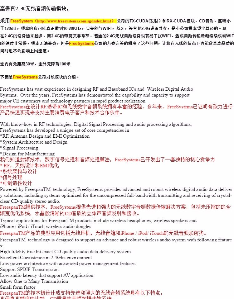 2.4G Беспроводная аудио, беспроводная аудио -передача с высокой скамейкой, стерео беспроводная аудио -трансмиссия