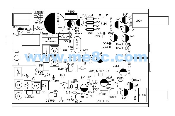 Плата спроектирована в соответствии со следующей структурой схемы:Состоит из частоты блокировки -модуля, интегрированная цепь, BH1417F (или BH1416F)+C9018+C3355+C2053+C1971Внешние отверстия входных микрофона и стерео входные отверстия (оба представляют собой трехмерный звук 3,5 мм), потенциометры внешнего входа микрофона, стереоауто -визуальные входные управления, потенциометры, переключатель питания, индикатор питания, сокет постоянного тока.Размер 99x69 мм, Рафинированная двойная панель,Подходит для изысканного верхнего и нижнего алюминиевого сплава, продаваемых на этом сайте.Схема схема вспомогательной схемы и диаграмма установки. Эта плата также применима к чипу BH1415F, но программная часть программного обеспечения должна быть разработана и создана сама по себе или приобретала нашу управляющую доску BH1415F.