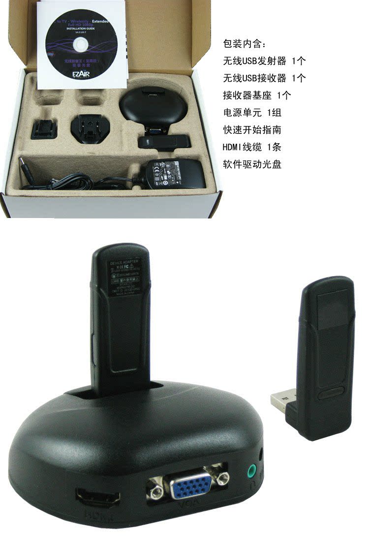 Проективное беспроводное VGA видео трансферт HDMI HD Wireless Video Ezair ezair