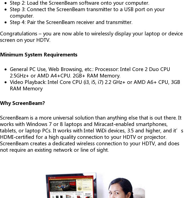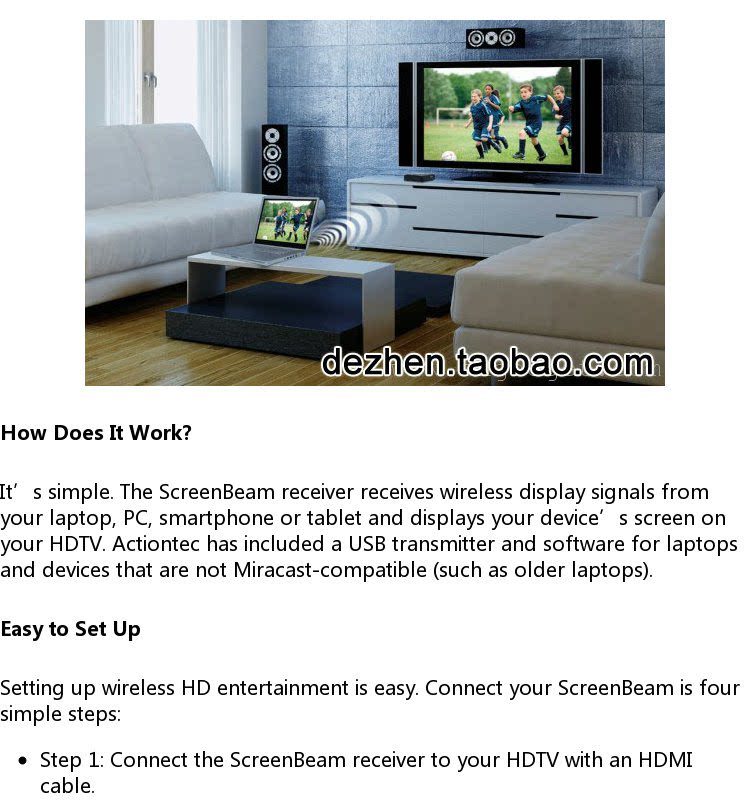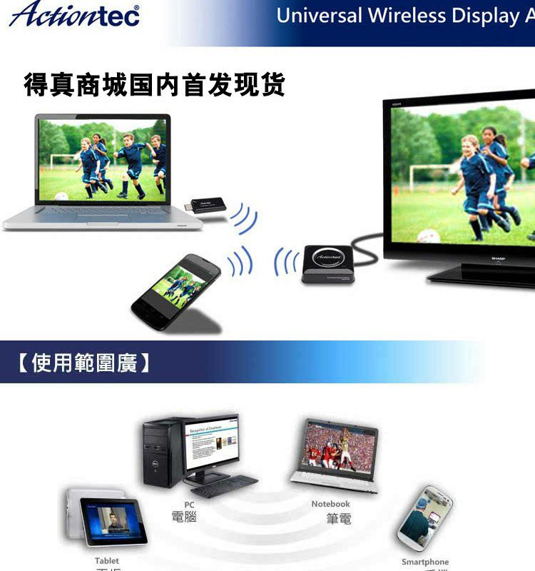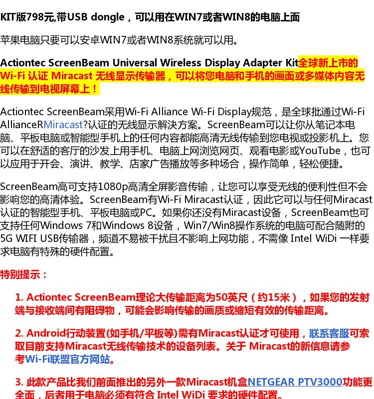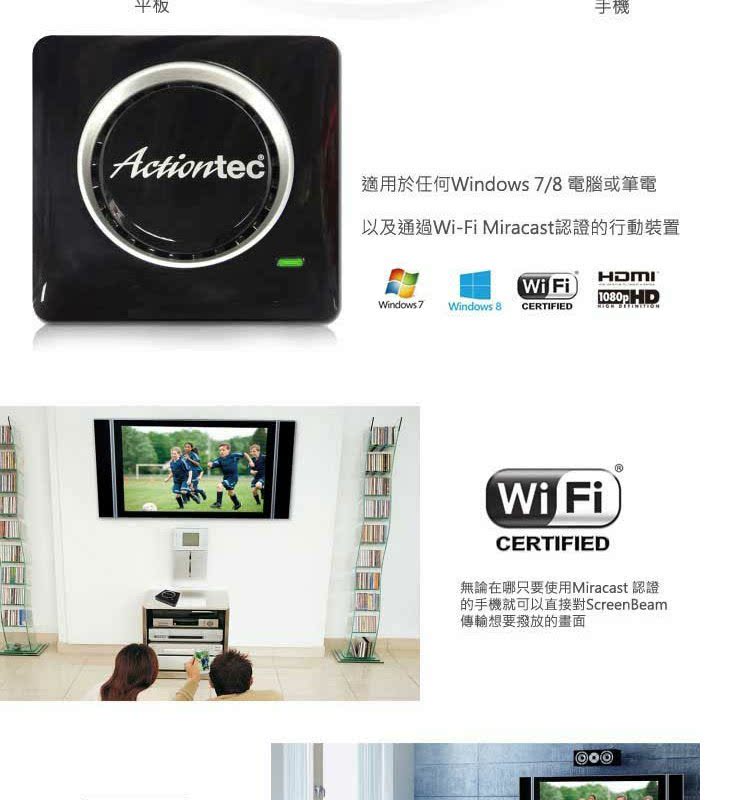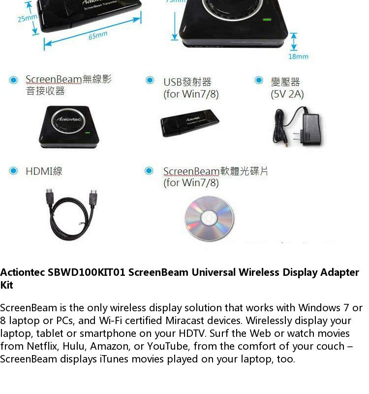Miracast widi лицензированный ActionTec ScreenBeam Kit Wireless High -Definition Audio -визуальная коробка передач