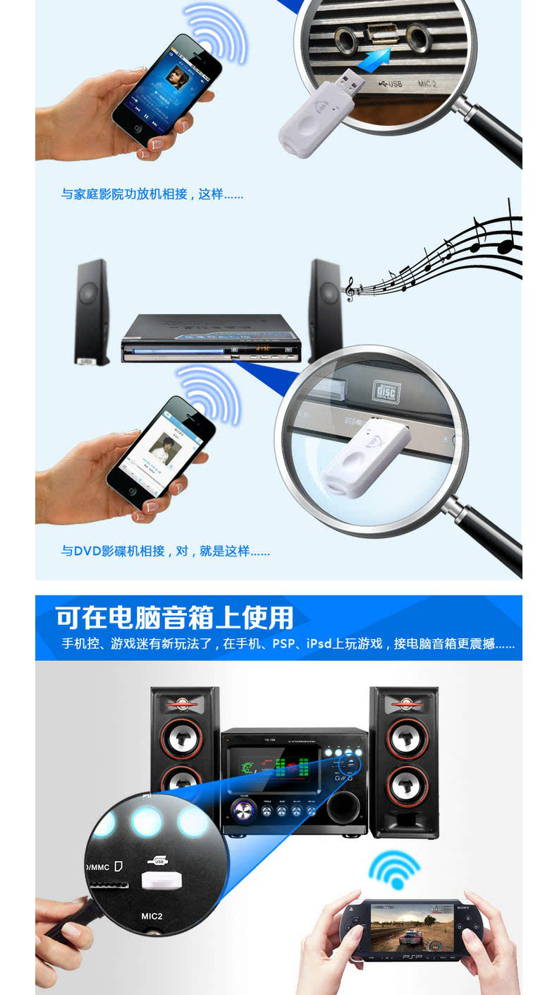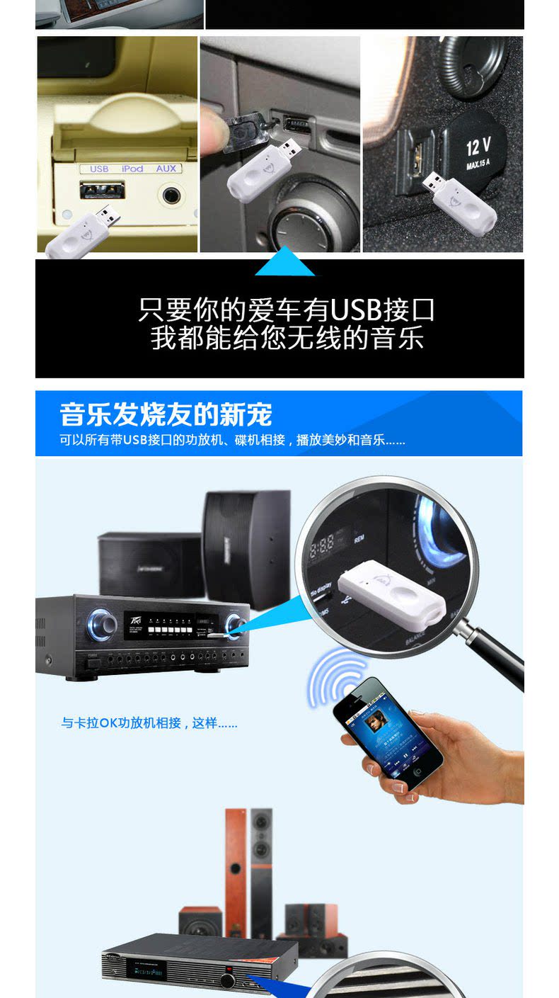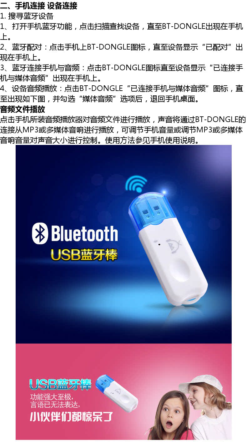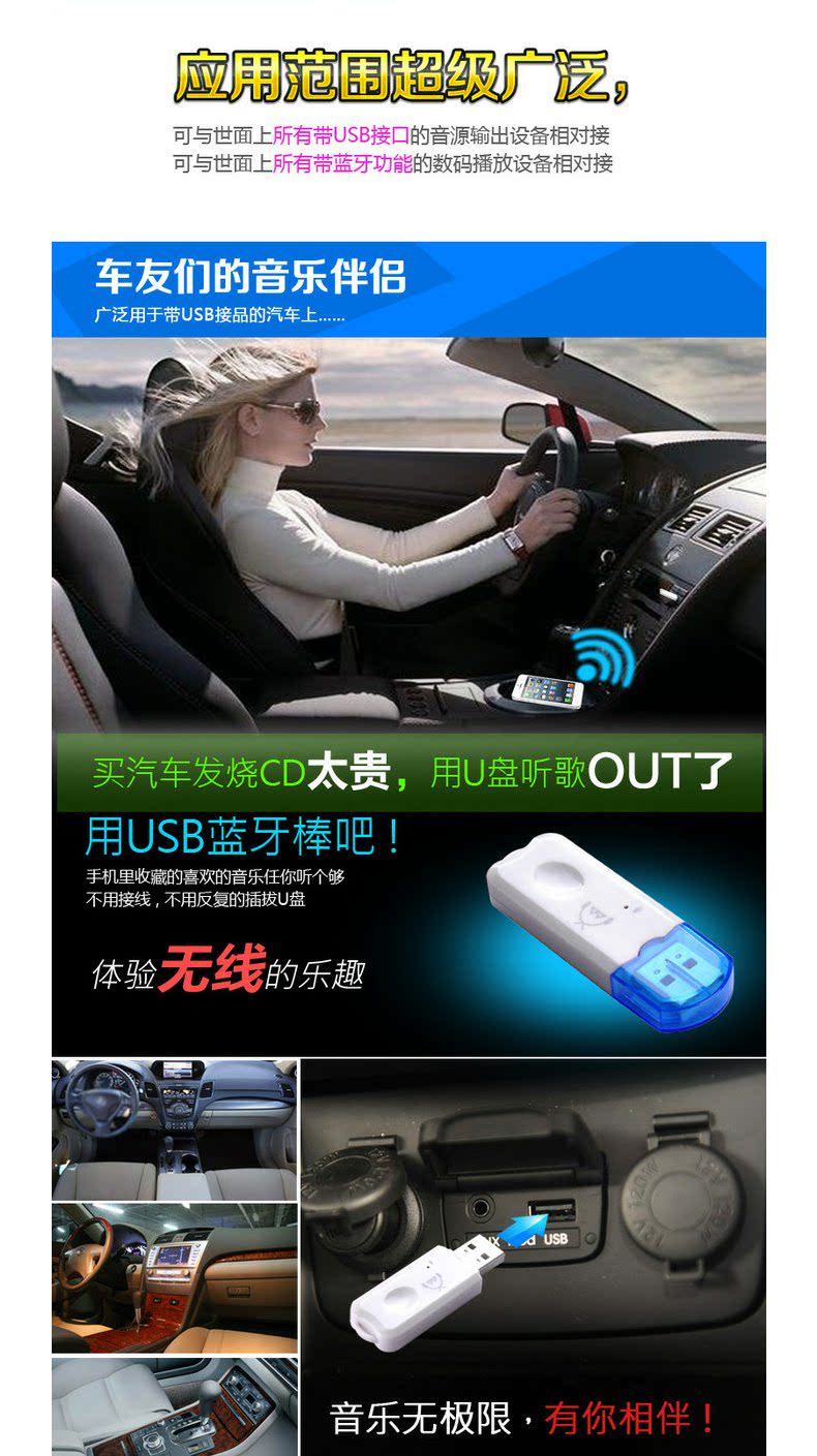 Парабративно Bluetooth -приемник USB CAR Bluetooth Stick Audio Adapter Беспроводной аудио динамик преобразует совместимый 4.0