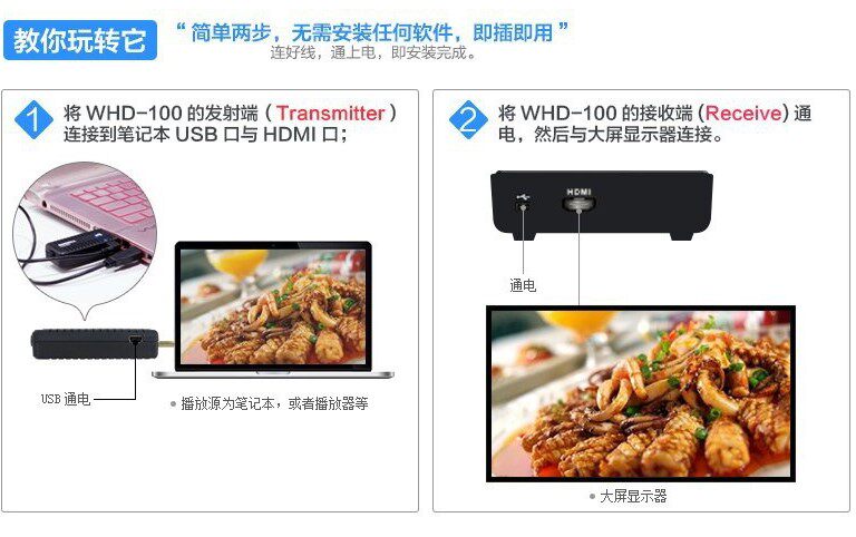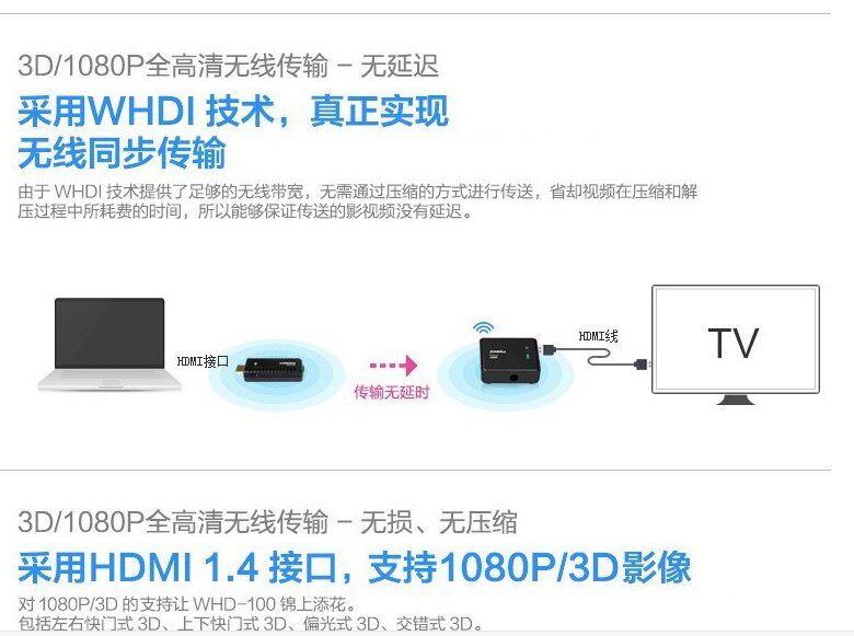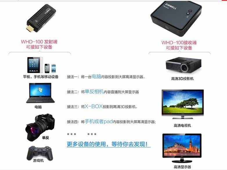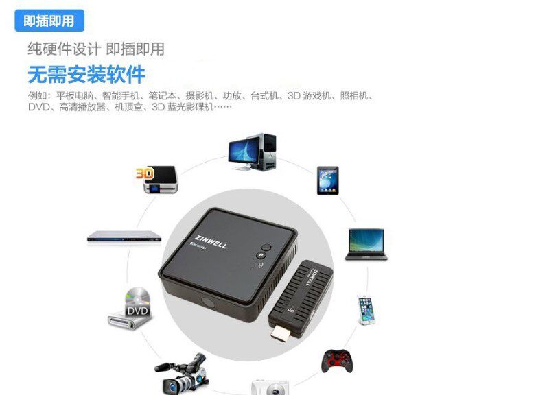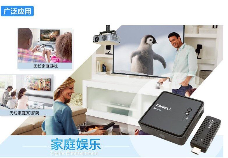 Zinwell Mini 3D Беспроводная беспроводная трансмиссия с высокой четкой WHD-100 Беспроводной аудио и видео передачи HDMI