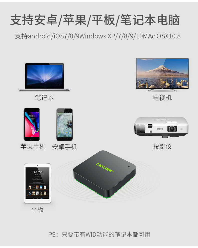 Wi -Fi Wireless HDMI тот же экран iPhone8x Мобильный телевизионный автомобиль видео экрана трансмиссия AirPlay Projection